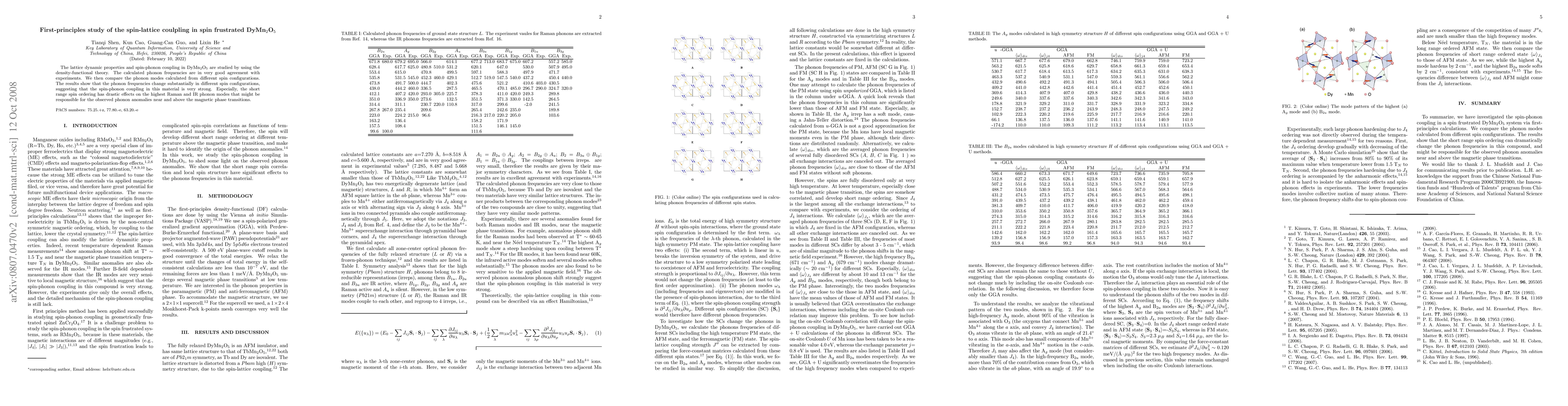 Researchers used density-functional theory to study DyMn$_2$O$_5$, finding strong spin-phonon coupling that changes with different spin configurations, suggesting a link between phonon anomalies and magnetic phase transitions.