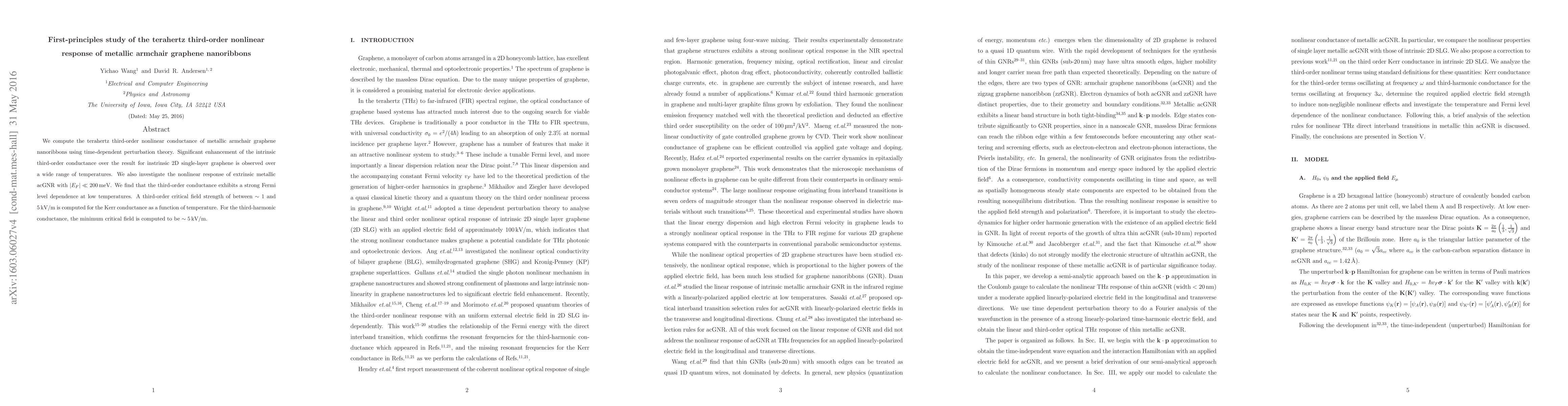 This study uses time-dependent perturbation theory to calculate the terahertz third-order nonlinear conductance of metallic armchair graphene nanoribbons, revealing significant enhancement compared to intrinsic 2D graphene. The research also finds strong dependence on Fermi level at low temperatures and computes critical field strengths for Kerr and third-harmonic conductances.