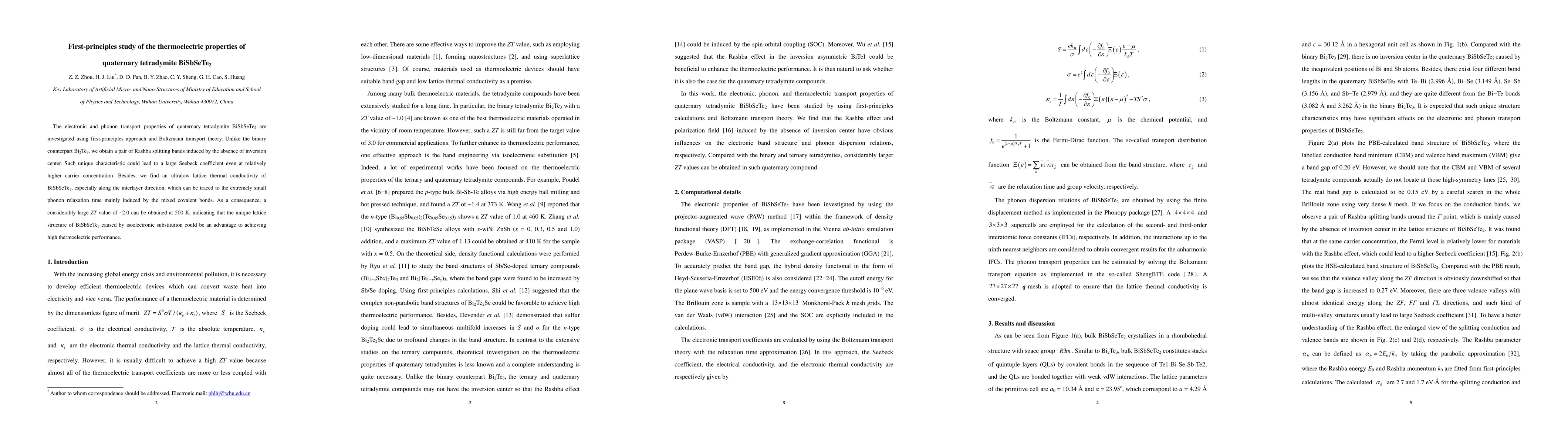 Researchers studied BiSbSeTe2, a new thermoelectric material that exhibits unique properties due to isoelectronic substitution, leading to high Seebeck coefficients and low thermal conductivity. The findings suggest this structure could improve thermoelectric performance.