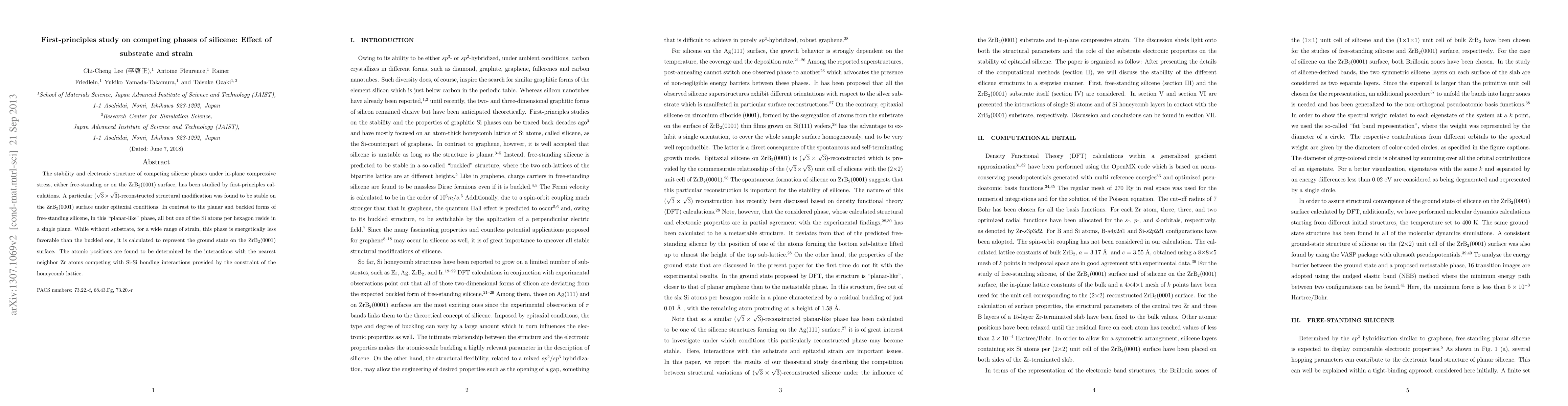 This study investigates the stability and electronic structure of silicene under strain, finding that a ($\sqrt{3}\times\sqrt{3}$)-reconstructed phase is stable on a ZrB$_2$ surface, while free-standing silicene favors a buckled form. The substrate influences the atomic arrangement, leading to a "planar-like" phase on the surface.