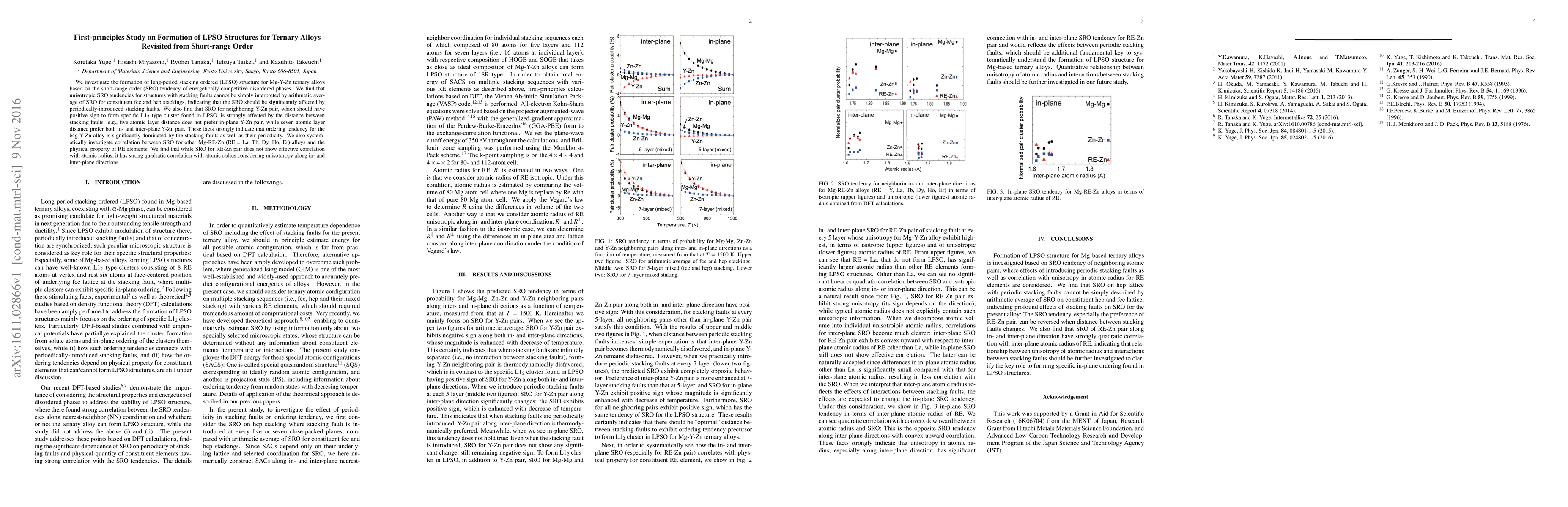 This study revisits the formation of long-period stacking ordered (LPSO) structures in Mg-Y-Zn ternary alloys, focusing on the short-range order (SRO) tendencies of competing disordered phases. It reveals that SRO is significantly influenced by the periodicity and distribution of stacking faults, with specific layer distances affecting the formation of L12 type clusters. Additionally, SRO correlations in other Mg-RE-Zn alloys show a strong quadratic relationship with the atomic radius of RE elements, indicating a complex interplay of factors in LPSO formation.