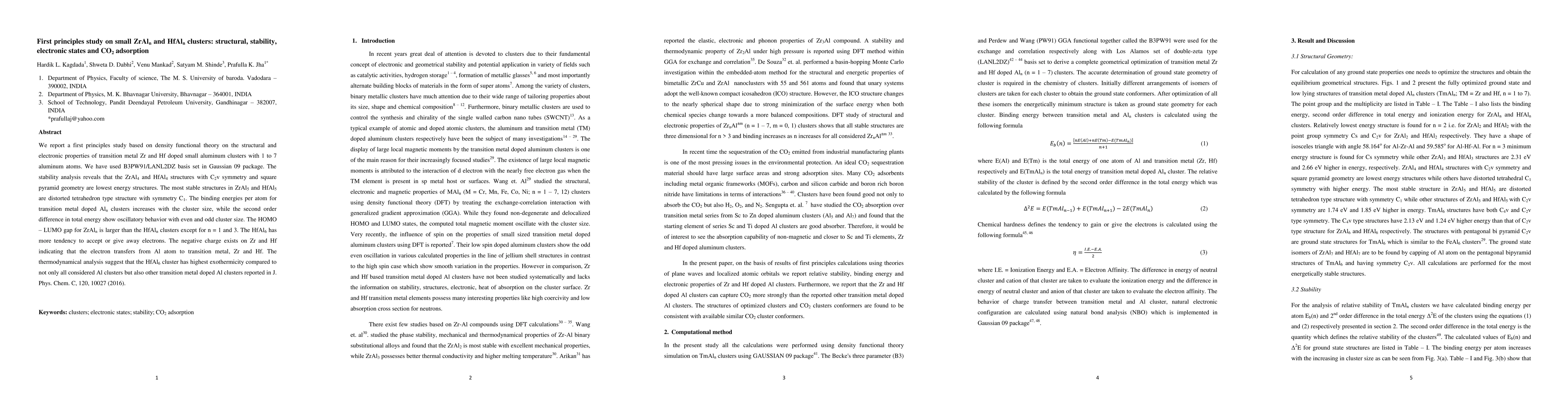 Researchers studied small aluminum clusters doped with Zr and Hf using density functional theory, finding that certain structures exhibit high stability and unique electronic properties.