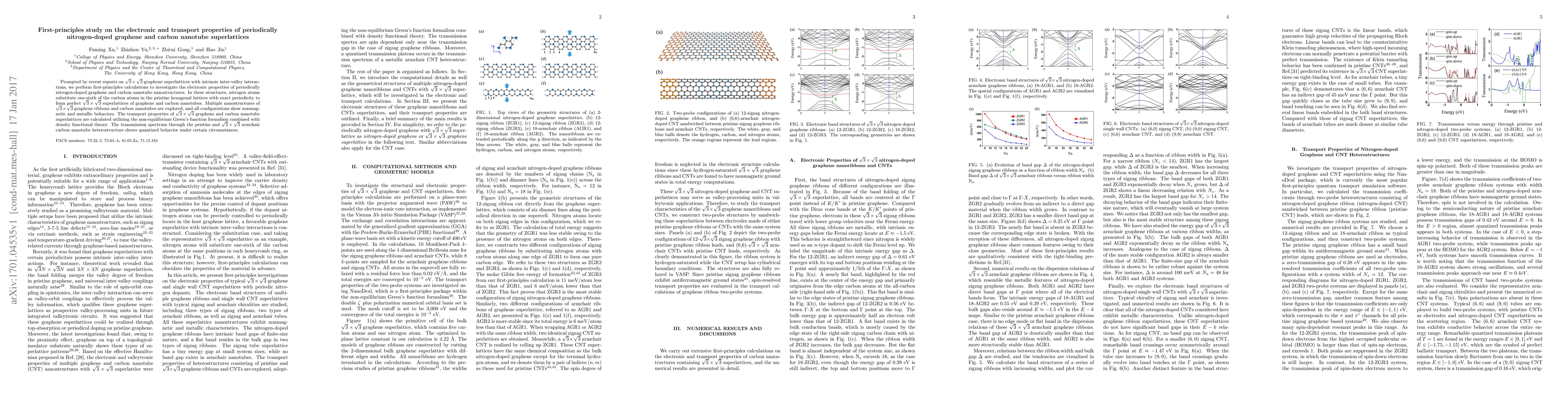 This study uses first-principles calculations to explore the electronic and transport properties of periodically nitrogen-doped graphene and carbon nanotube superlattices. The research finds that these $\sqrt{3} \times \sqrt{3}$ superlattices exhibit metallic behavior and quantized transport properties under specific conditions.