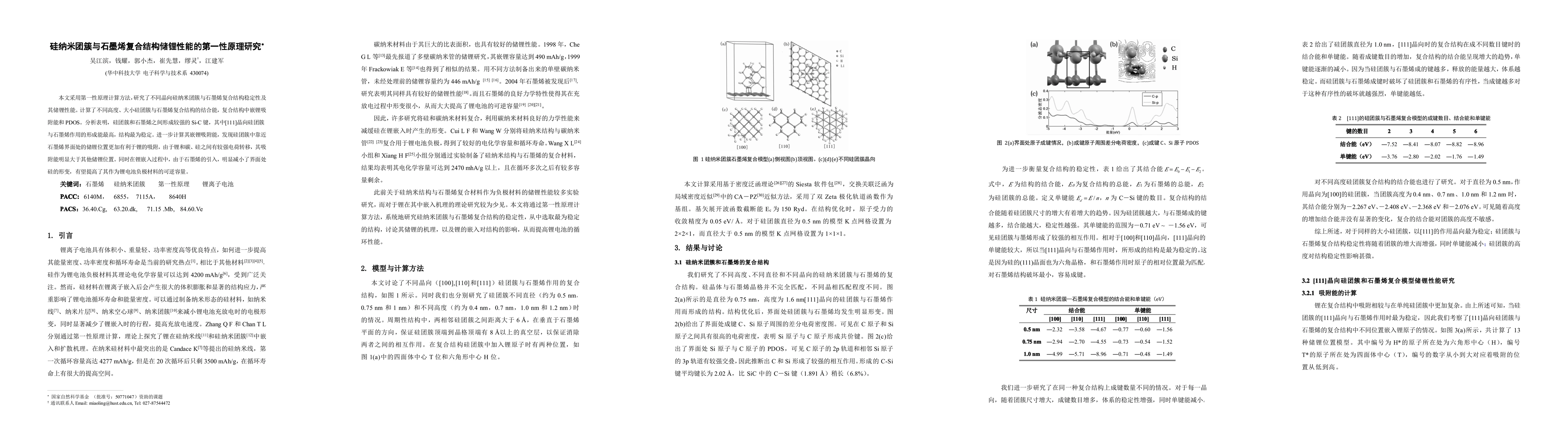 This study investigates the lithium storage performance of silicon clusters combined with graphene using first-principles calculations. The hybrid structure of silicon clusters with graphene (especially the (111) plane) shows strong Si-C bonds and high stability, leading to efficient lithium absorption due to charge transfer, with reduced silicon cluster deformation.