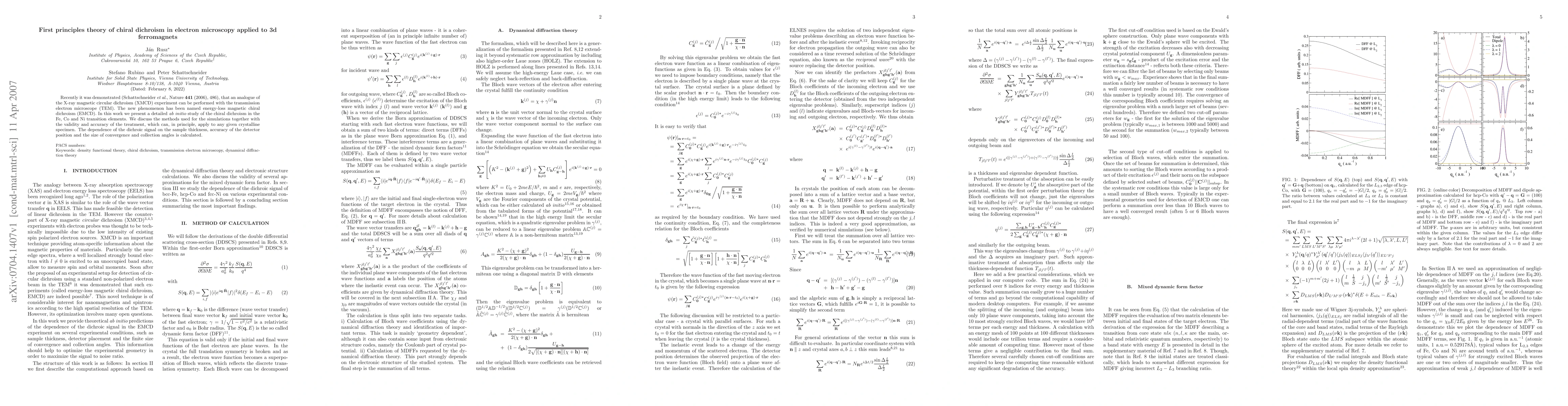 Recently it was demonstrated (Schattschneider et al., Nature 441 (2006), 486), that an analogue of the X-ray magnetic circular dichroism (XMCD) experiment can be performed with the transmission electron microscope (TEM). The new phenomenon has been named energy-loss magnetic chiral dichroism (EMCD). In this work we present a detailed ab initio study of the chiral dichroism in the Fe, Co and Ni transition elements. We discuss the methods used for the simulations together with the validity and accuracy of the treatment, which can, in principle, apply to any given crystalline specimen. The dependence of the dichroic signal on the sample thickness, accuracy of the detector position and the size of convergence and collection angles is calculated.