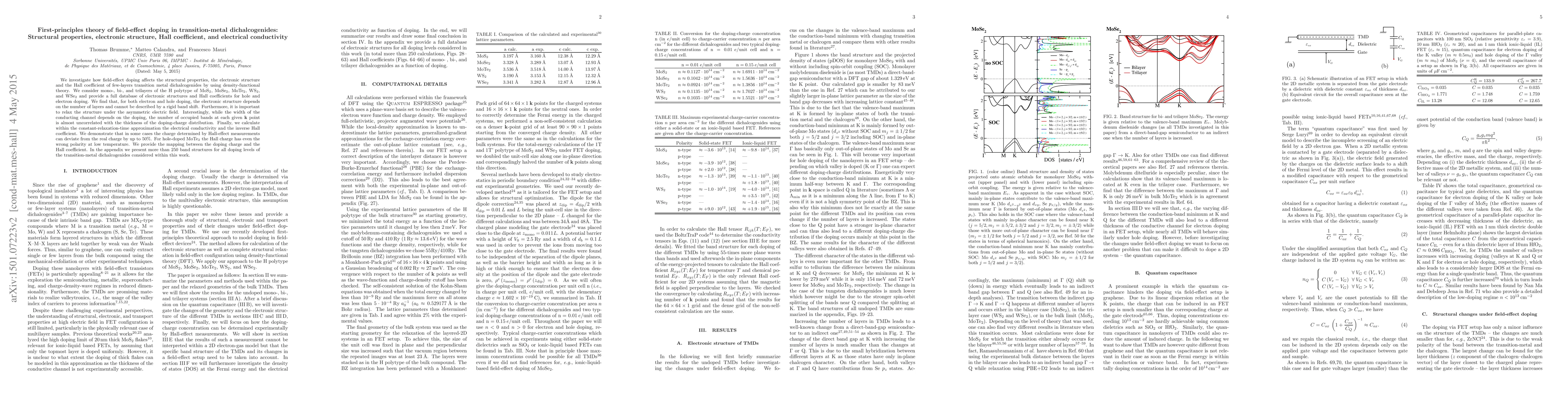 This paper uses density-functional theory to explore field-effect doping in few-layer transition metal dichalcogenides, revealing that electronic structure varies with layer count and cannot be explained by a rigid band shift. It also highlights discrepancies between Hall-effect measurements and actual charge, especially in hole-doped MoTe2.