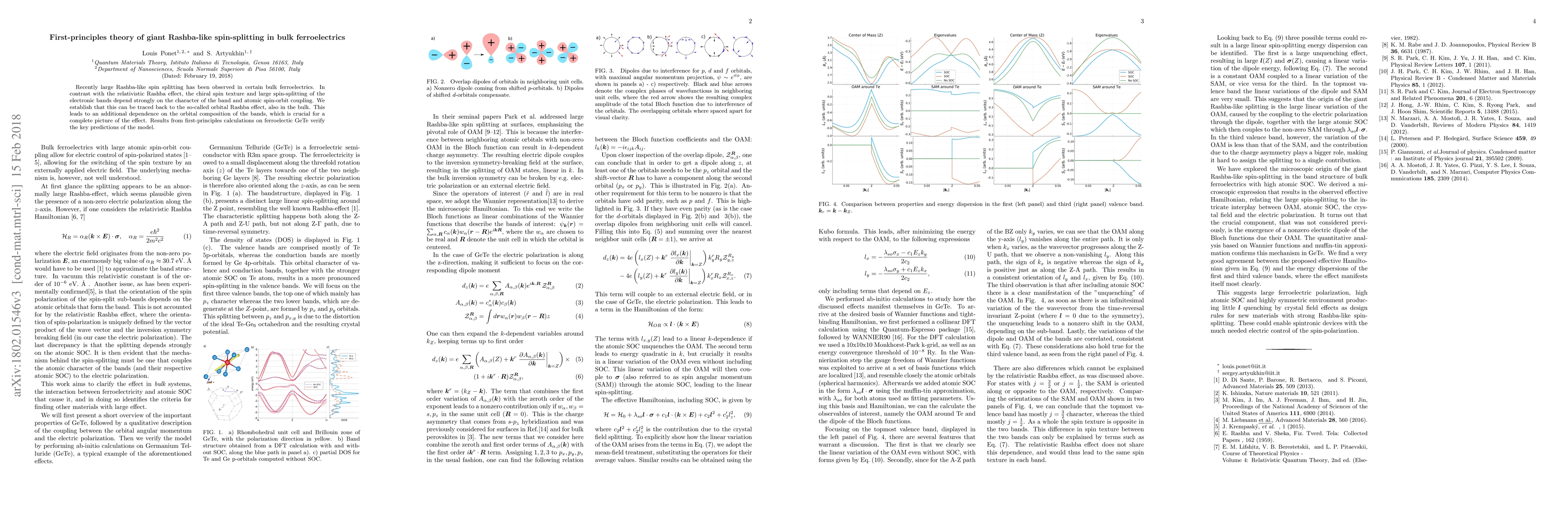 This paper explores the origin of giant Rashba-like spin-splitting in bulk ferroelectrics, attributing it to the orbital Rashba effect rather than the relativistic effect. First-principles calculations on GeTe confirm the model's predictions, highlighting the importance of orbital composition in the spin-splitting mechanism.
