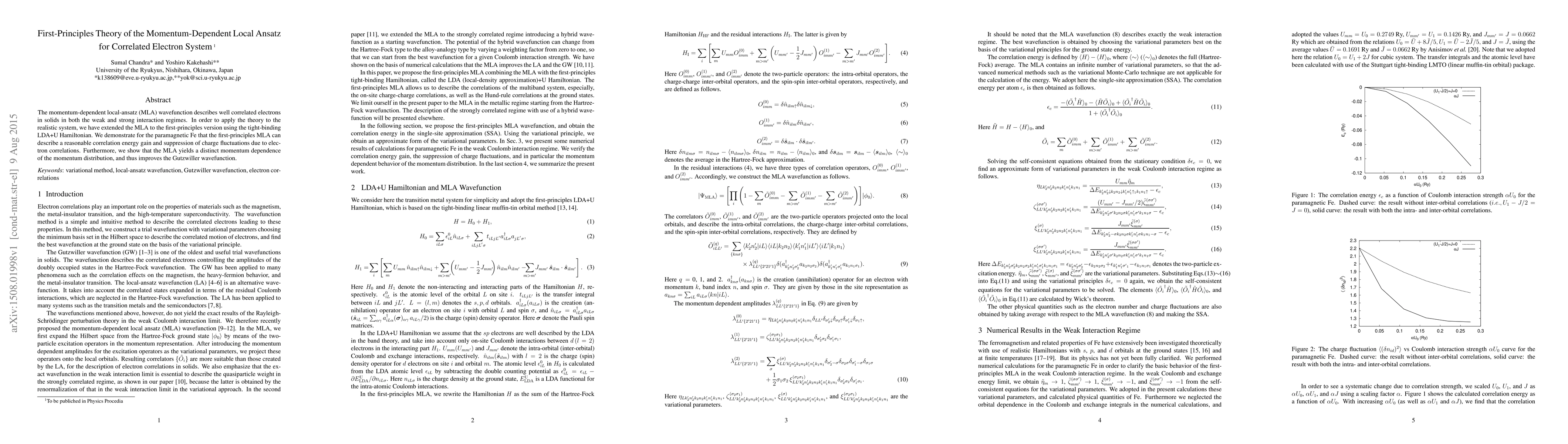 A new theory describes how electron correlations affect solids, improving predictions for correlated systems like Fe. It achieves this by extending an existing wavefunction to the first-principles level using a tight-binding model.
