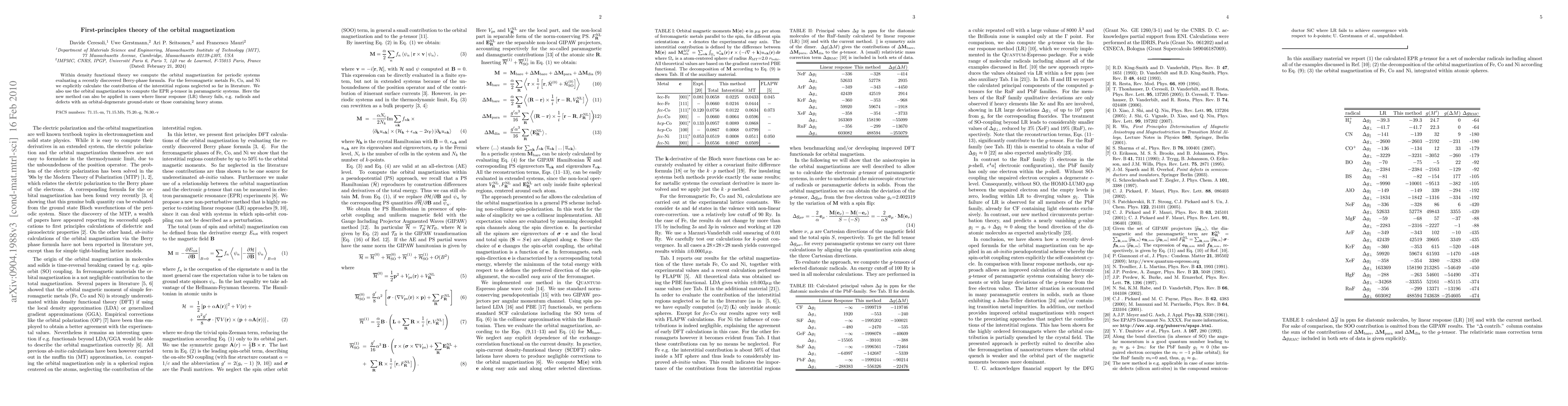 This paper presents a first-principles theory for calculating orbital magnetization in ferromagnetic metals using density functional theory, improving previous values by including interstitial contributions. It also extends the method to compute the EPR $g$-tensor in various systems, including radicals and defects, where linear response theory fails.