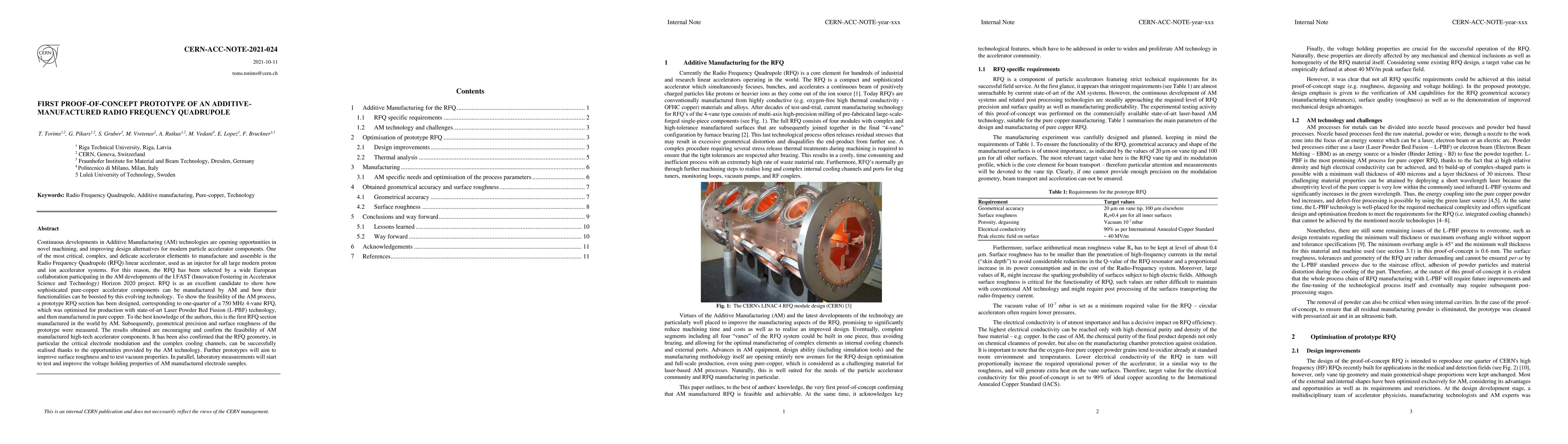 Researchers have successfully created a proof-of-concept prototype of an additive-manufactured radio frequency quadrupole, a critical component in particle accelerators, using laser powder bed fusion technology, marking the first time such a component has been made by 3D printing.