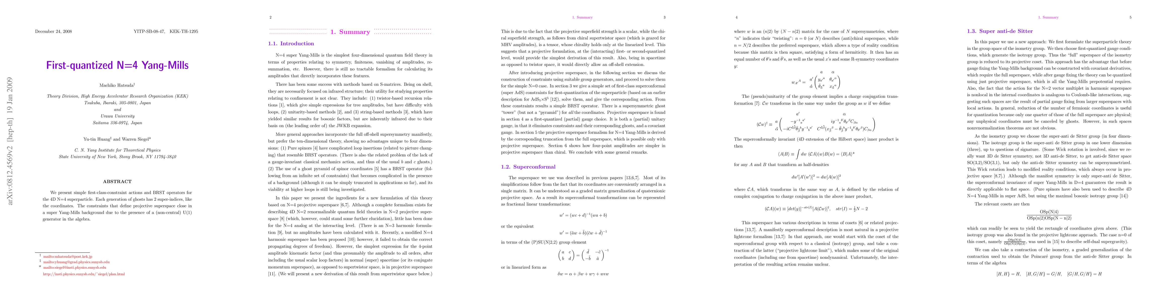 Researchers developed actions and BRST operators for a 4D N=4 superparticle, introducing a new approach to supersymmetric Yang-Mills theory with a U(1) generator.