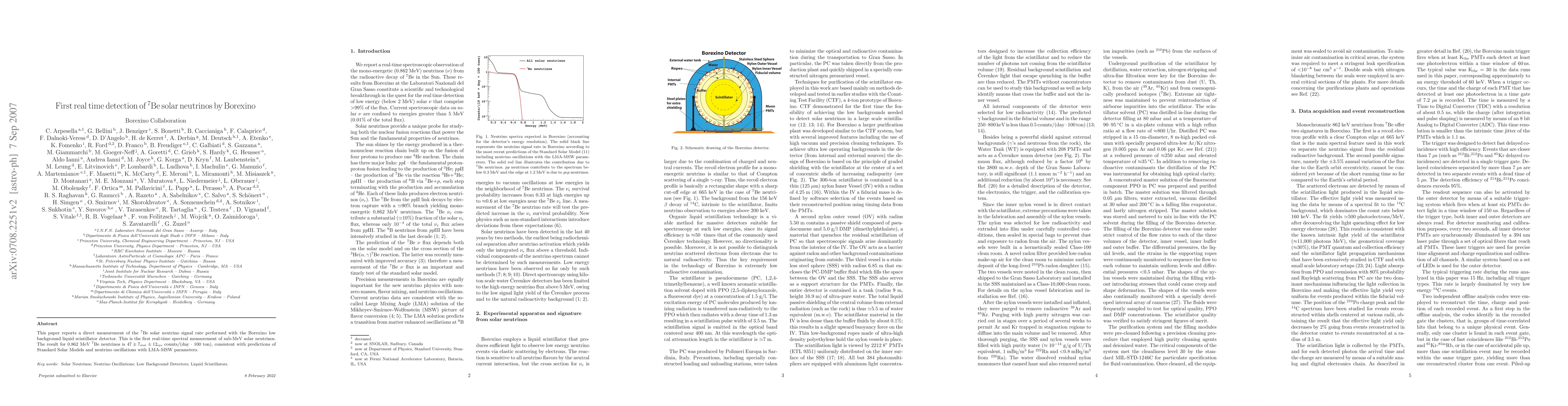 This paper presents the first real-time spectral measurement of Be7 solar neutrinos using the Borexino detector, reporting a signal rate of 47 ± 7 (stat) ± 12 (sys) counts/(day x 100 ton), consistent with Standard Solar Models and neutrino oscillation predictions.