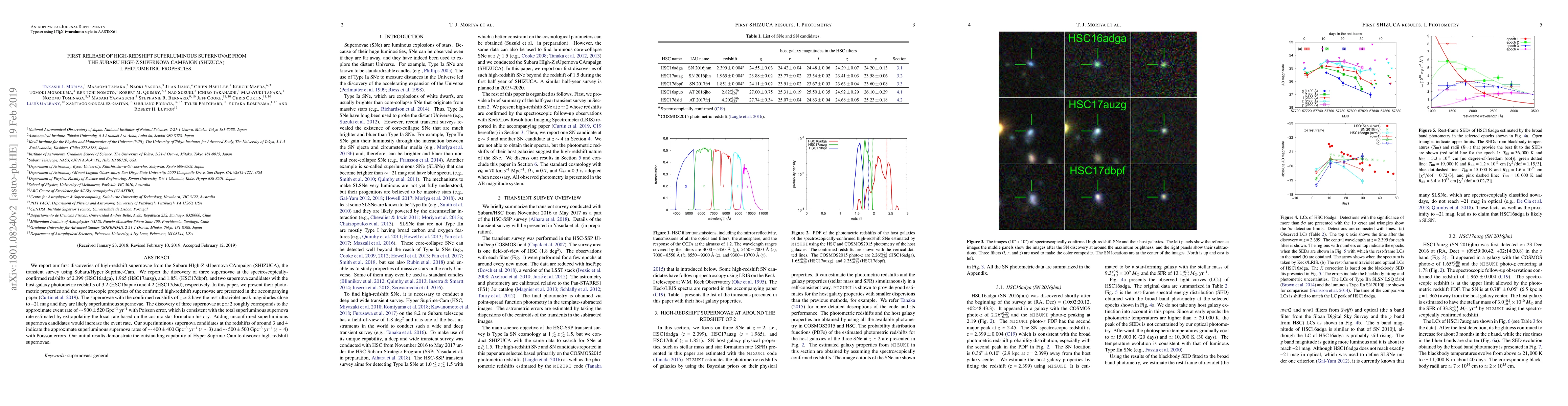 This paper reports the first discoveries of high-redshift superluminous supernovae from the SHIZUCA survey using Subaru/Hyper Suprime-Cam, identifying three confirmed supernovae at redshifts 2.399, 1.965, and 1.851, and two candidates at higher redshifts. The findings suggest a consistent event rate with extrapolated local rates.