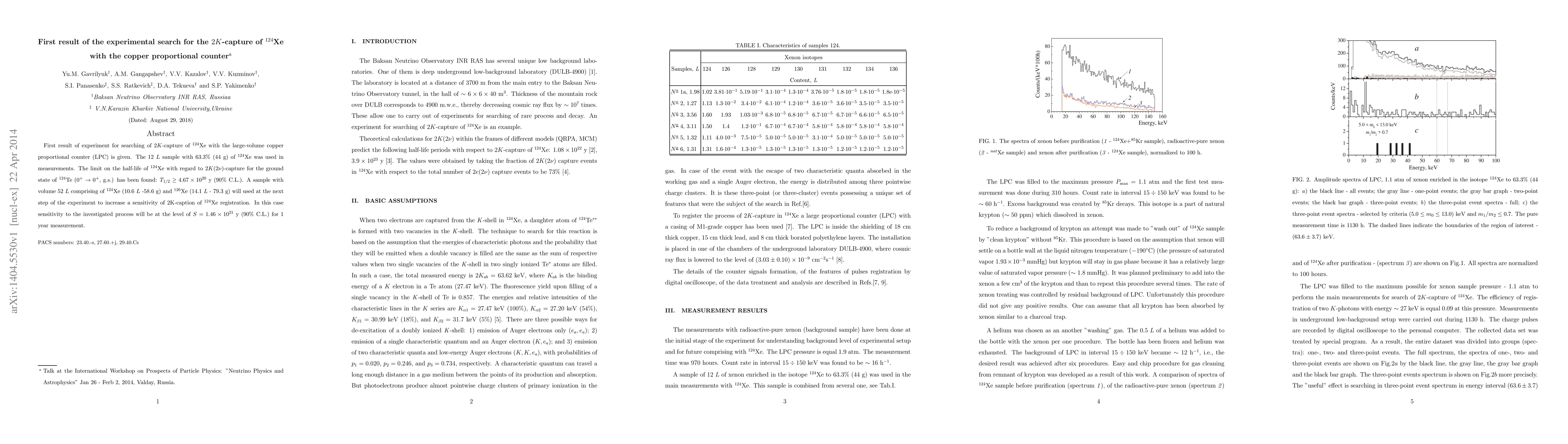 Researchers searched for Xe-124's 2K-capture using a large copper counter and found a limit on its half-life of over 4.67 billion years with a high level of sensitivity expected in the next experiment.