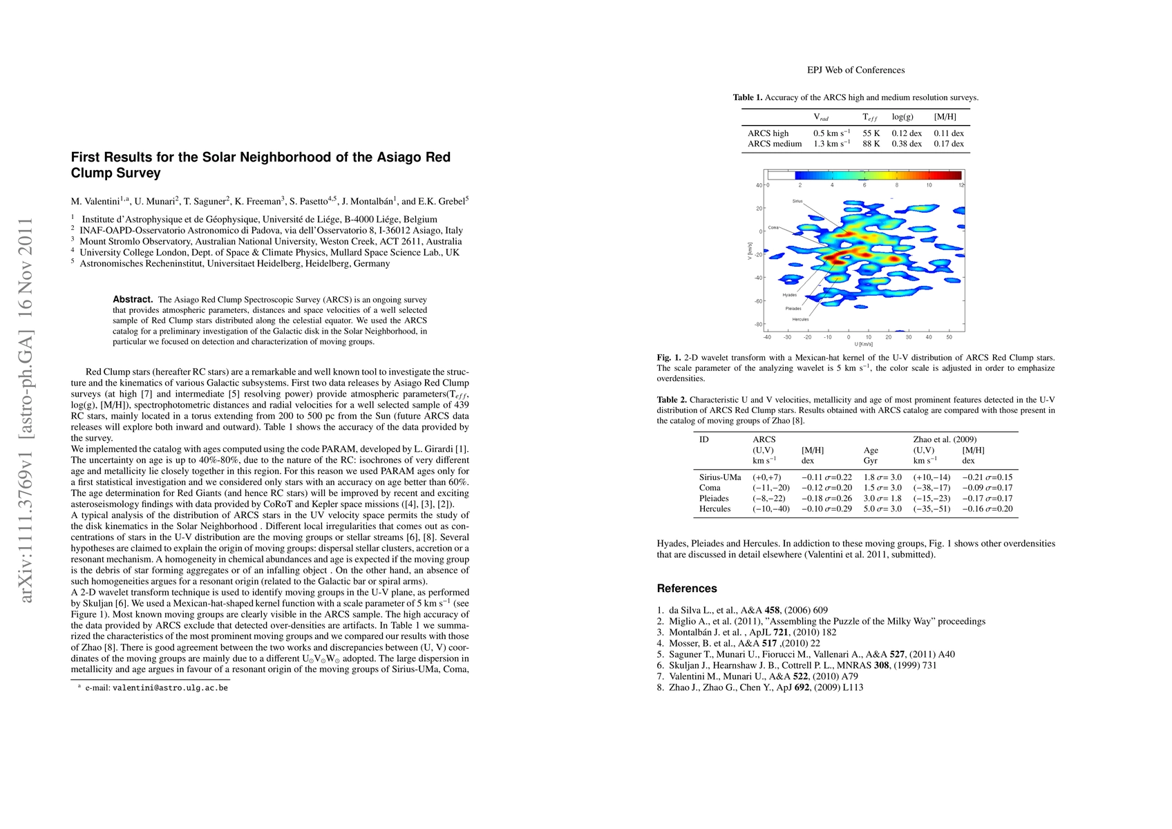 The Asiago Red Clump Spectroscopic Survey (ARCS) is an ongoing survey that provides atmospheric parameters, distances and space velocities of a well selected sample of Red Clump stars distributed along the celestial equator. We used the ARCS catalog for a preliminary investigation of the Galactic disk in the Solar Neighborhood, in particular we focused on detection and characterization of moving groups.