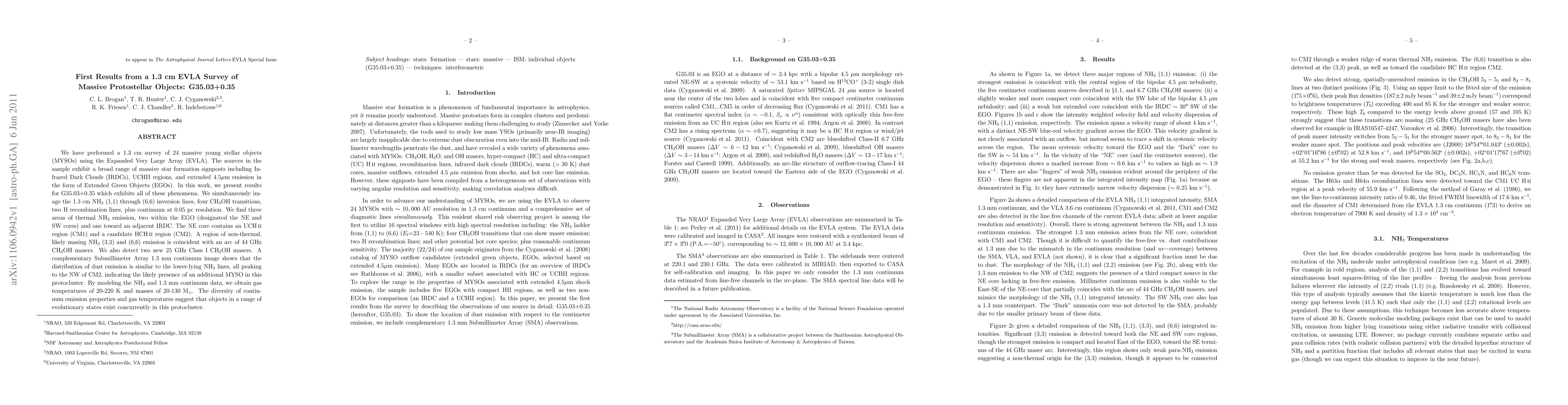 This study presents results from a 1.3 cm EVLA survey of massive protostellar objects, focusing on G35.03+0.35, revealing diverse star formation signposts and three thermal ammonia emission areas. The findings suggest the presence of multiple evolutionary stages in the protocluster.