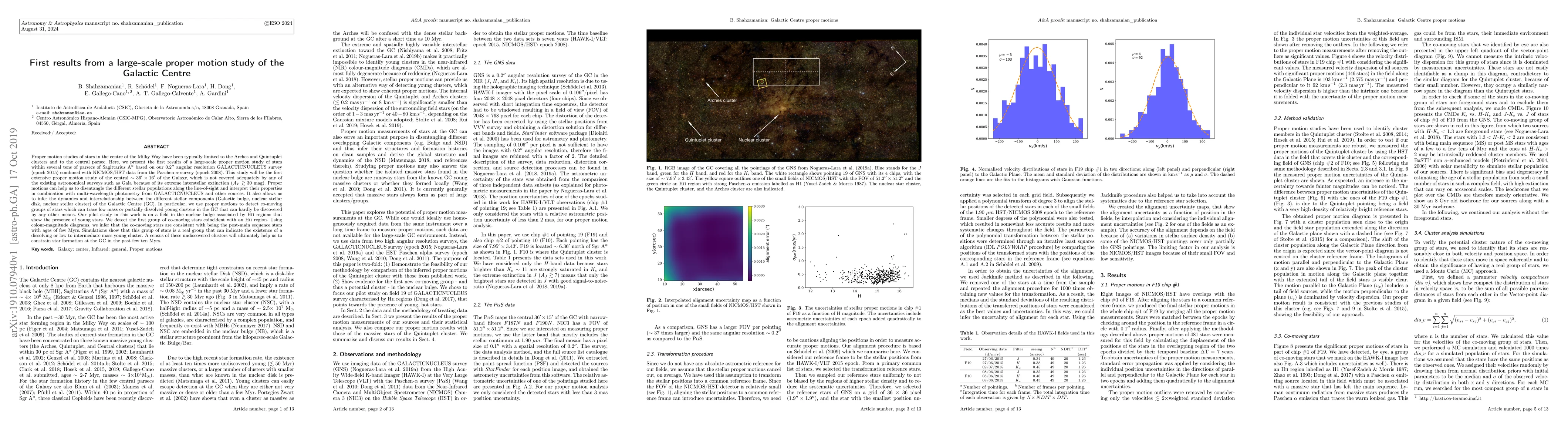 This study presents the first large-scale proper motion survey of stars near Sagittarius A* in the Galactic Centre, detecting a group of co-moving young stars and hinting at the existence of low-to-intermediate mass clusters.