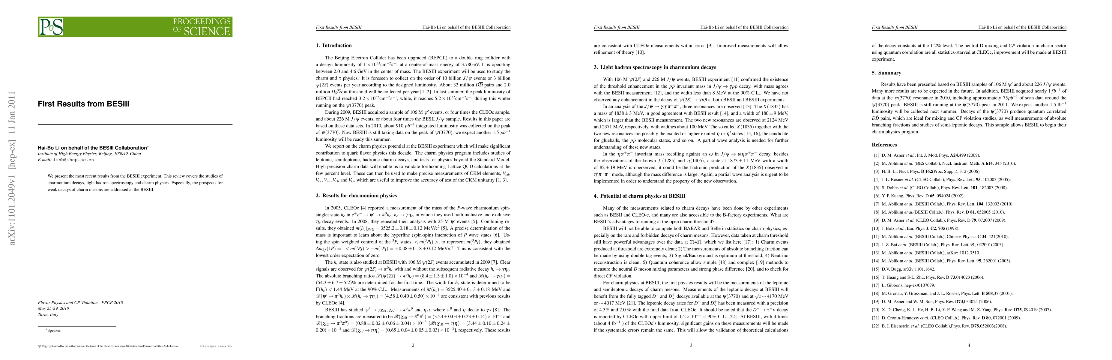 The BESIII experiment presents new findings on charmonium decays, light hadron spectroscopy, and charm physics, with a focus on the potential for exploring weak decays of charm mesons. These results mark significant advancements in understanding these particle interactions.
