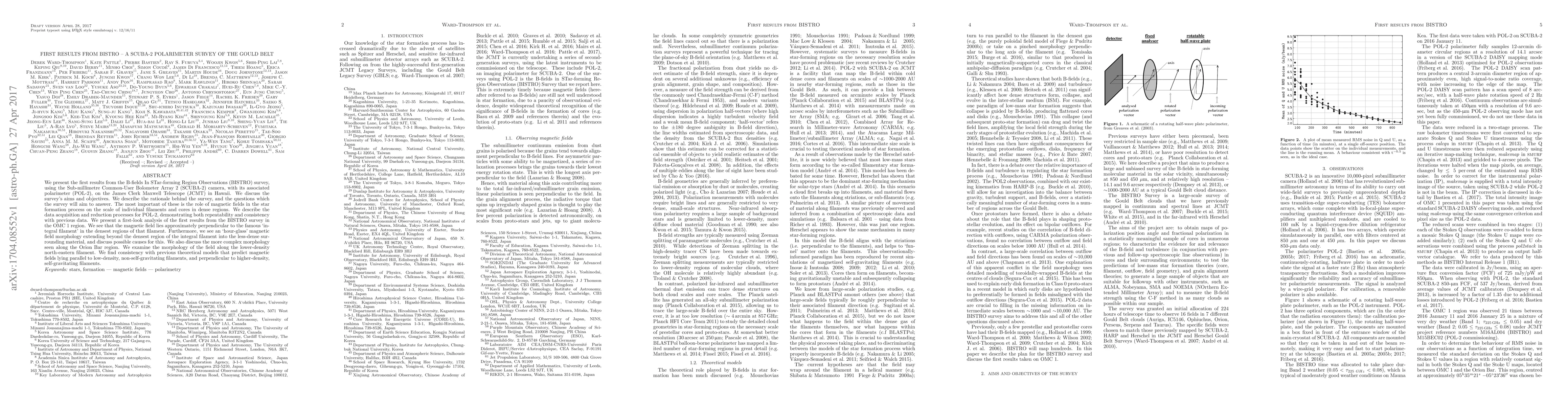 The BISTRO survey using SCUBA-2's POL-2 on JCMT reveals magnetic fields in the OMC 1 region of the Gould Belt, showing perpendicular alignment to dense filaments and an 'hour-glass' morphology extending into less-dense areas, supporting theories on magnetic field roles in star formation.