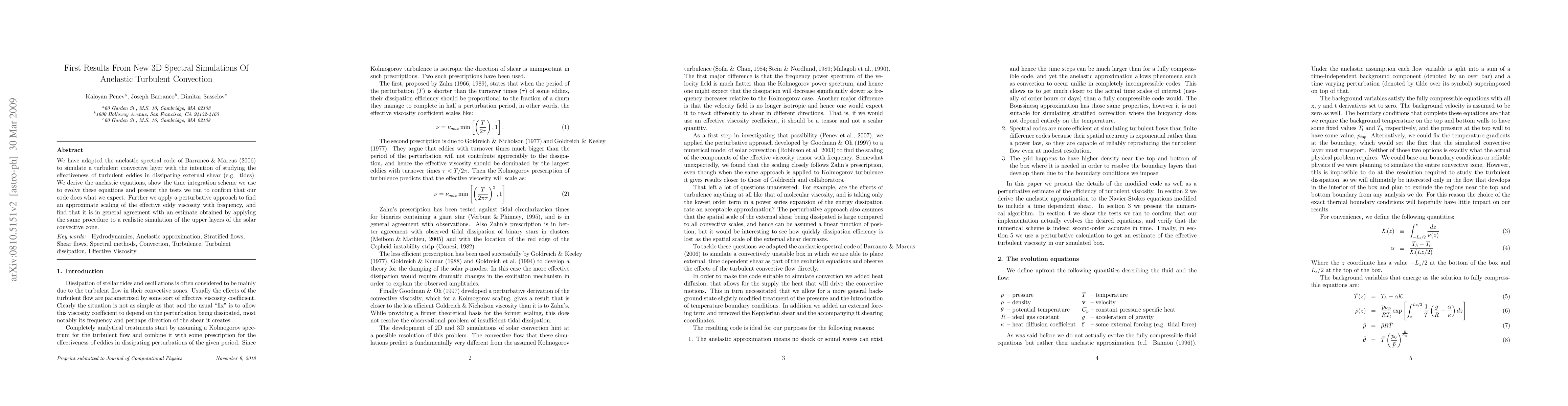 We have adapted the anelastic spectral code of Barranco & Marcus (2006) to simulate a turbulent convective layer with the intention of studying the effectiveness of turbulent eddies in dissipating external shear (e.g. tides). We derive the anelastic equations, show the time integration scheme we use to evolve these equations and present the tests we ran to confirm that our code does what we expect. Further we apply a perturbative approach to find an approximate scaling of the effective eddy viscosity with frequency, and find that it is in general agreement with an estimate obtained by applying the same procedure to a realistic simulation of the upper layers of the solar convective zone.