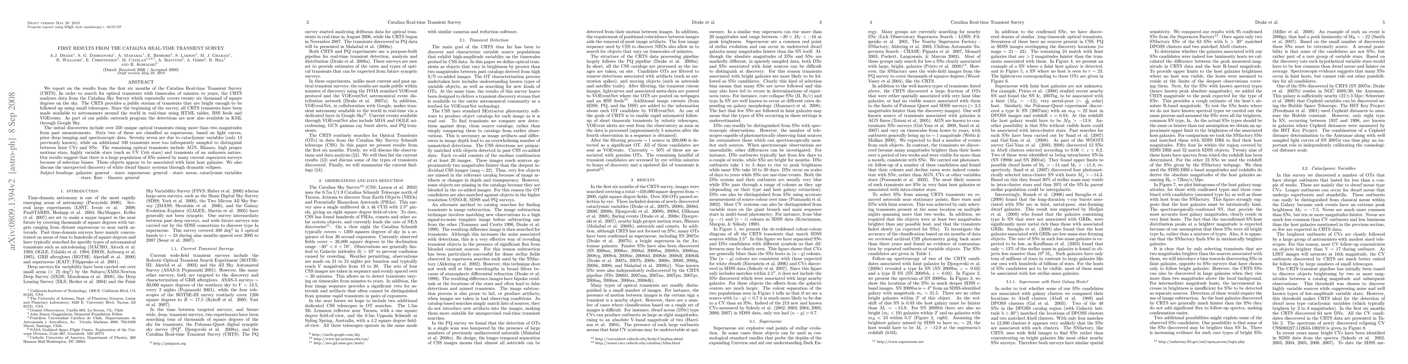 The Catalina Real-time Transient Survey (CRTS) has identified over 350 unique optical transients in its first six months, including 62 supernovae and 77 cataclysmic variables. The survey highlights a significant population of supernovae missed by other surveys due to selection biases.