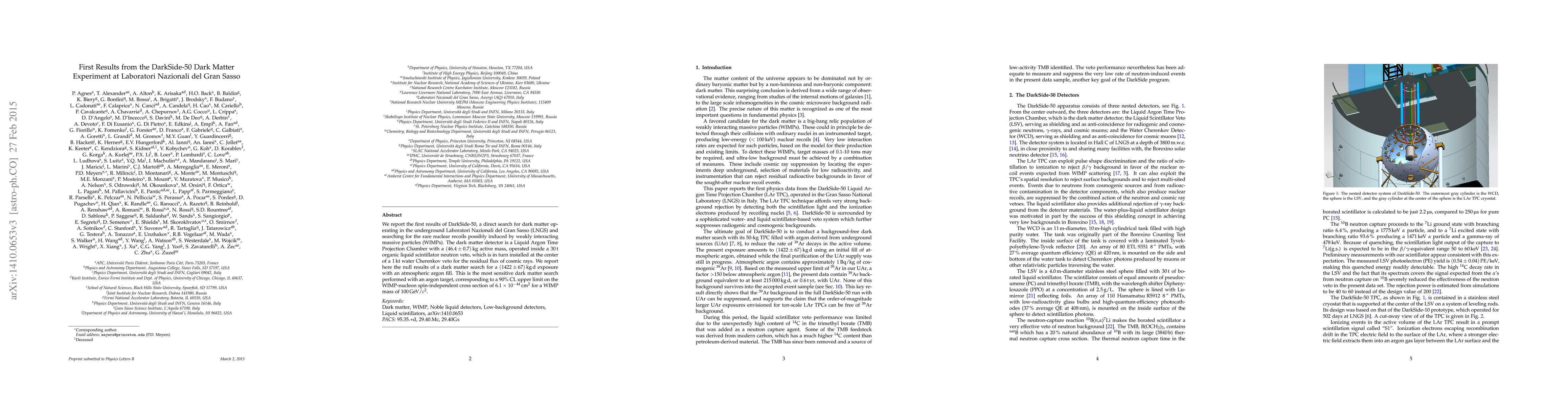 The DarkSide-50 experiment at Laboratori Nazionali del Gran Sasso reports its first results, setting a new upper limit on the WIMP-nucleon spin-independent cross-section at 6.1x10^-44 cm^2 for a WIMP mass of 100 GeV/c^2, using a Liquid Argon Time Projection Chamber with 46.4 kg active mass. These null results represent the most sensitive dark matter search conducted with an argon target to date.