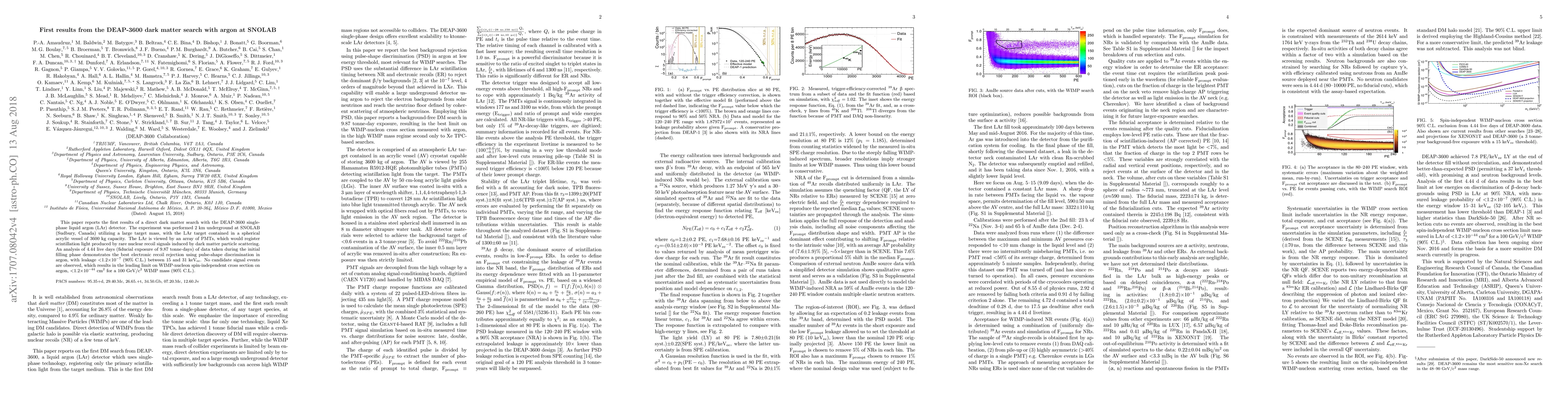 The DEAP-3600 experiment, using a 3600 kg liquid argon target, reports no dark matter detection events in 9.87 tonne-days of data, setting a leading limit on WIMP-nucleon spin-independent cross section on argon at <1.2×10^-44 cm^2 for a 100 GeV/c^2 WIMP mass (90% C.L.).