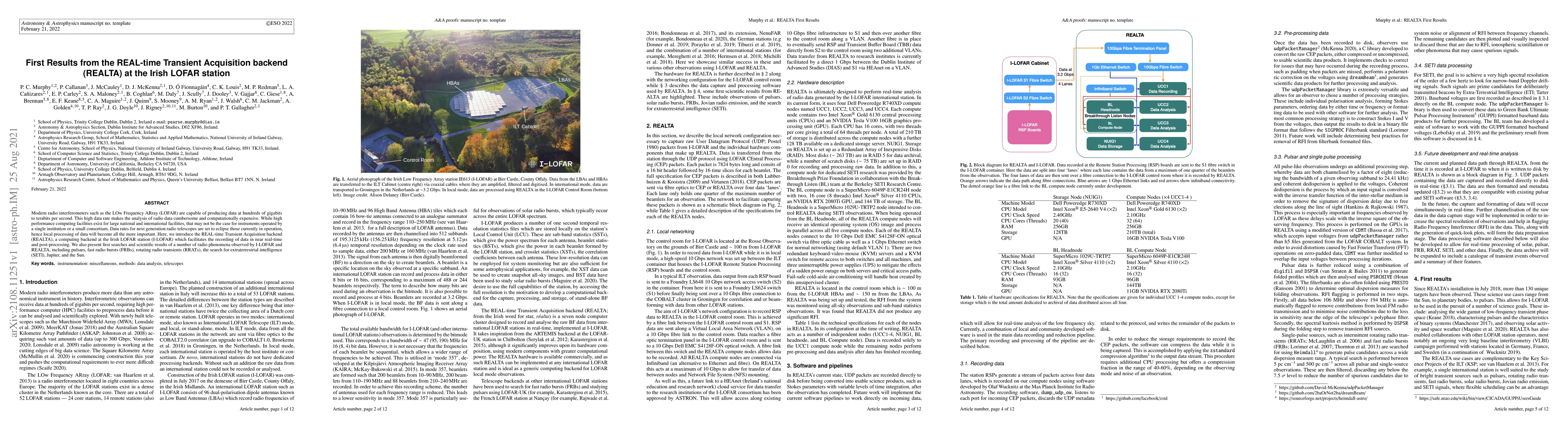 This paper introduces the REALTA backend at the Irish LOFAR station, designed for near real-time data acquisition and processing, addressing the high data rates of modern radio interferometers. Initial results from REALTA include observations of pulsars, fast radio bursts, and other phenomena, highlighting its potential for local data processing.