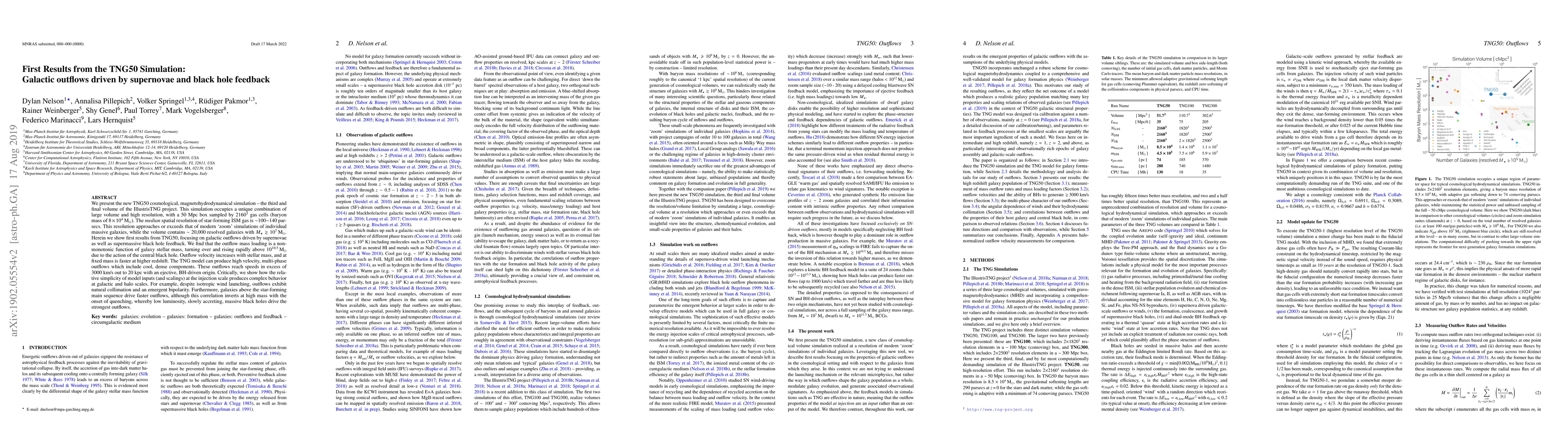 The TNG50 simulation reveals that galactic outflows driven by supernovae and black hole feedback increase with galaxy stellar mass, reaching speeds of over 3000 km/s, and are influenced by the onset of quenching.