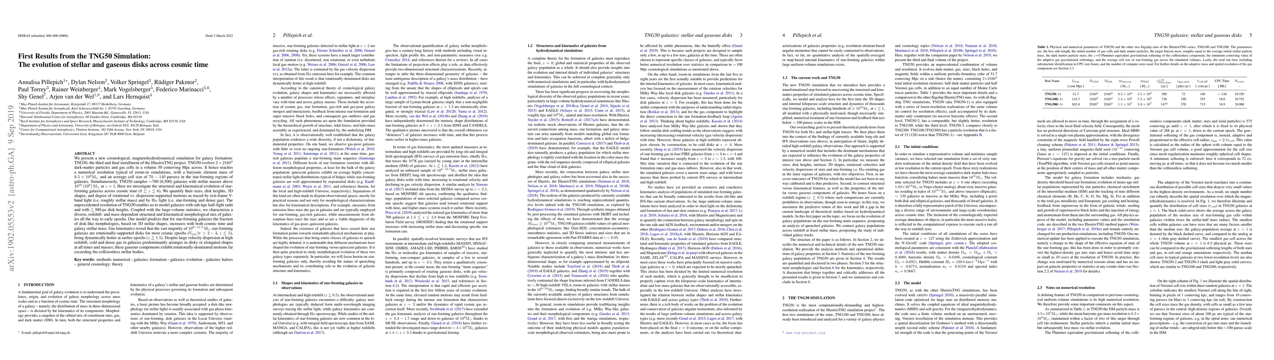 The TNG50 simulation reveals the evolution of stellar and gaseous disks in galaxies from cosmic time 0 to 6, showing a diverse mix of structural and kinematical morphologies. The simulation predicts an increasing fraction of disk-like galaxies with time and mass, with most star-forming galaxies exhibiting rotationally-dominated gas motions.
