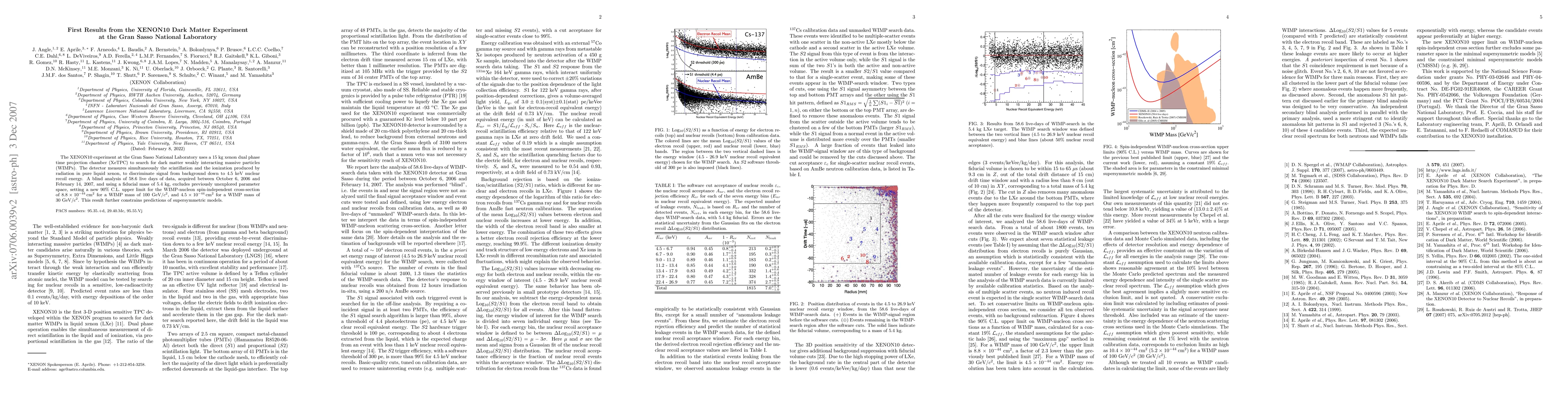 The XENON10 experiment at Gran Sasso uses a xenon-based detector to search for dark matter WIMPs, setting new limits on WIMP-nucleon interaction cross-sections and constraining supersymmetric models. The analysis of 58.6 live days of data excludes unexplored parameter space, achieving a 90% C.L. upper limit of 8.8 x 10^{-44} cm^2 for a 100 GeV/c^2 WIMP.