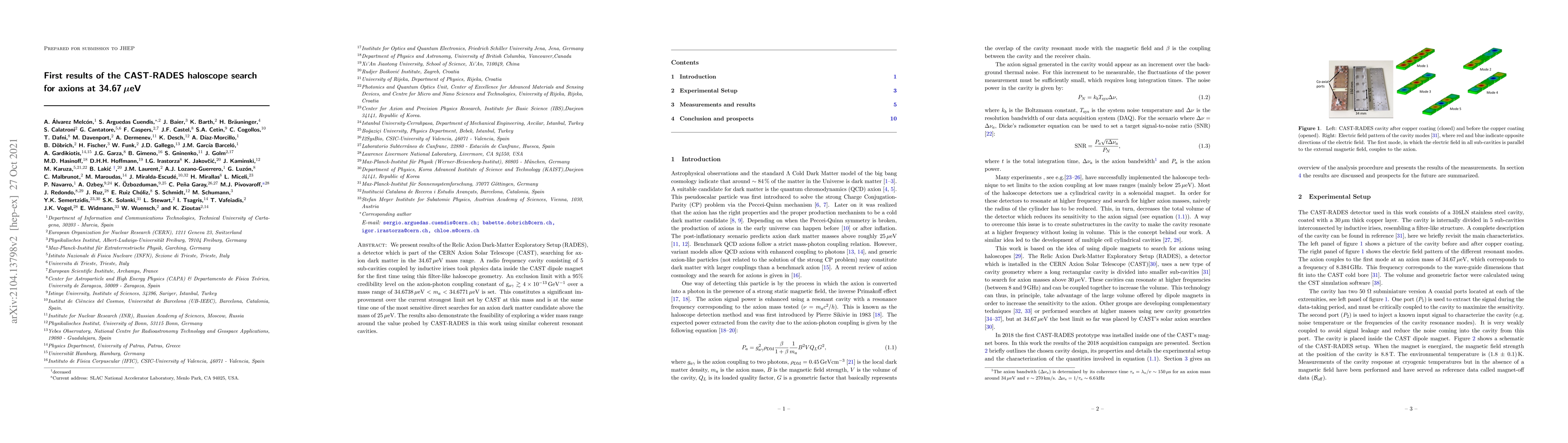 The CAST-RADES haloscope has set a new exclusion limit for axion-photon coupling in the 34.67 $\mu$eV mass range, improving upon previous CAST results and demonstrating the potential for broader searches using resonant cavity techniques. This study marks a significant step in direct axion dark matter detection.