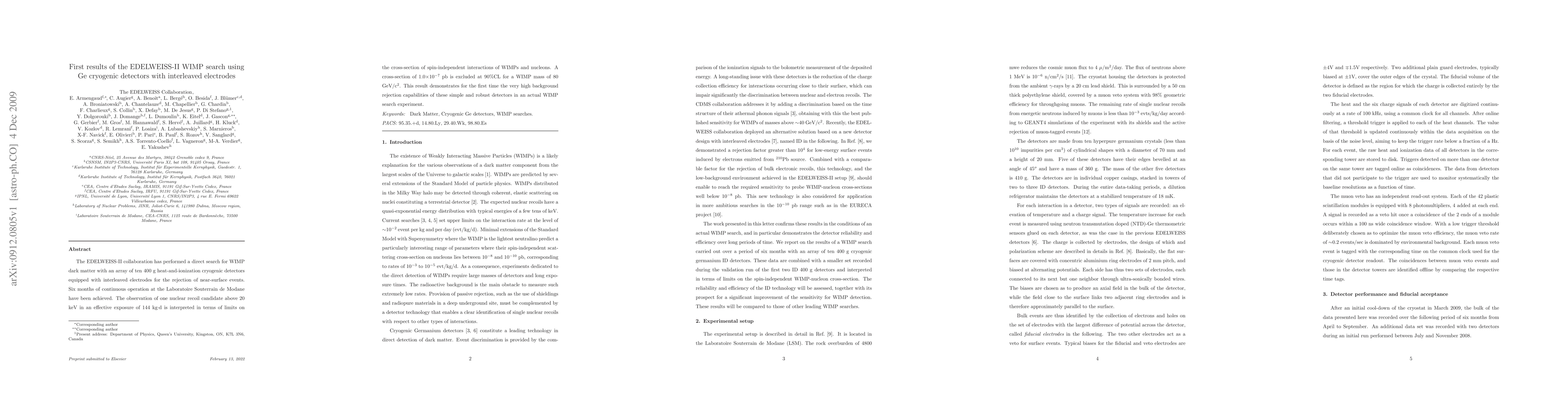 The EDELWEISS-II collaboration reports initial results from a WIMP dark matter search using cryogenic germanium detectors with interleaved electrodes, achieving high background rejection. They set a limit on the spin-independent WIMP-nucleon interaction cross-section at 1.0x10^-7 pb for a WIMP mass of 80 GeV/c2 at 90% confidence level.