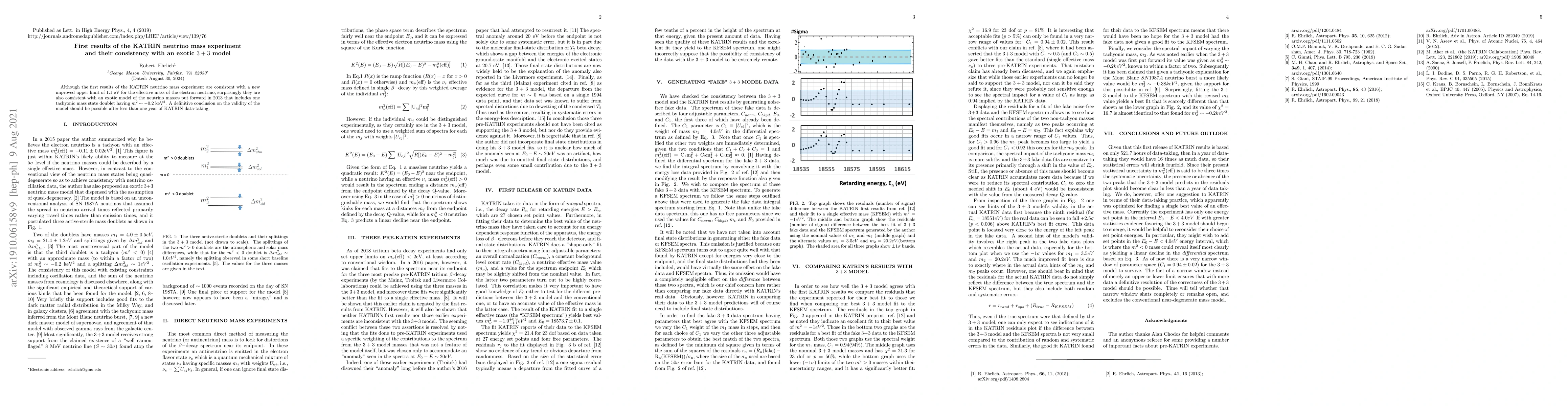 Although the first results of the KATRIN neutrino mass experiment are consistent with a new improved upper limit of 1.1 eV for the effective mass of the electron neutrino, surprisingly they are also consistent with an exotic model of the neutrino masses put forward in 2013 that includes one tachyonic mass state doublet having $m^2\sim - 0.2$ keV$^2$. A definitive conclusion on the validity of the model should be possible after less than one year of KATRIN data-taking.