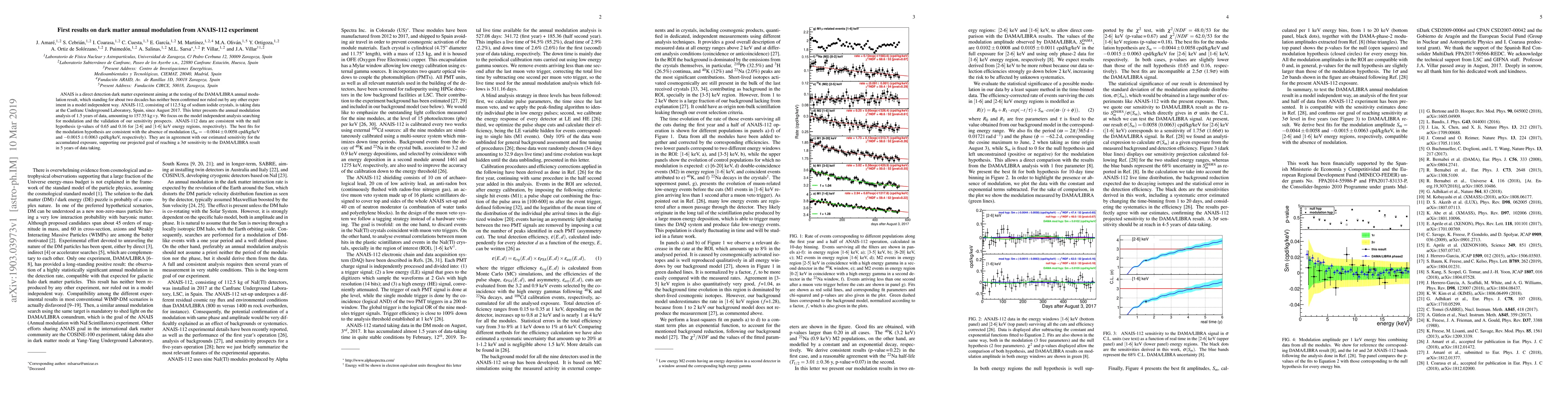 The ANAIS-112 experiment found no evidence of annual modulation in 1.5 years of dark matter data, consistent with the null hypothesis and supporting its projected goal of reaching a 3sigma sensitivity to previous results in 5 years.