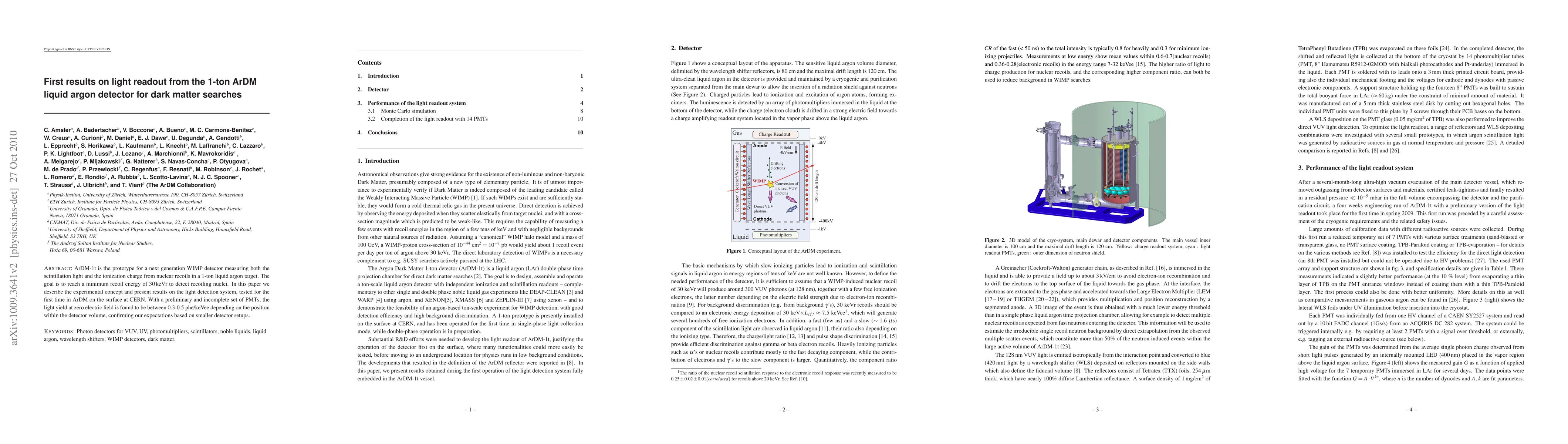 This paper reports initial results from the ArDM-1t liquid argon detector prototype designed for dark matter searches, focusing on its light readout system. Preliminary tests at CERN show a light yield of 0.3-0.5 phe/keVee, aligning with expectations from smaller setups.