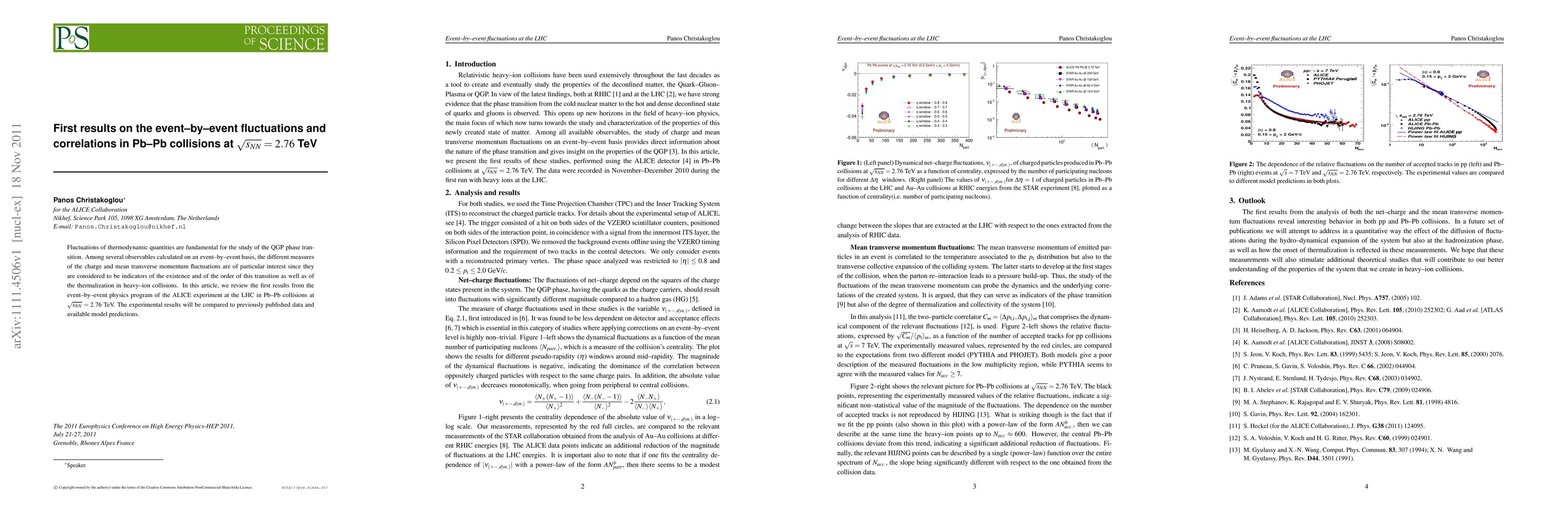 Fluctuations of thermodynamic quantities are fundamental for the study of the QGP phase transition. Among several observables calculated on an event-by-event basis, the different measures of the charge and mean transverse momentum fluctuations are of particular interest since they are considered to be indicators of the existence and of the order of this transition as well as of the thermalization in heavy--ion collisions. In this article, we review the first results from the event-by-event physics program of the ALICE experiment at the LHC in Pb--Pb collisions at $\sqrt{s_{NN}} = 2.76$ TeV. The experimental results will be compared to previously published data and available model predictions.