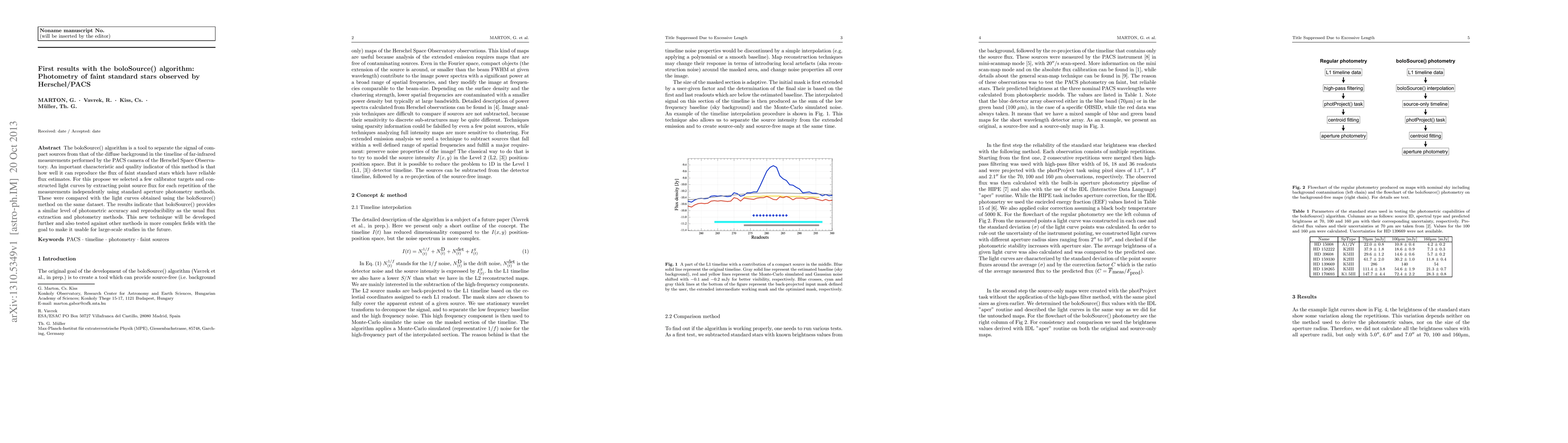 The boloSource() algorithm is a tool to separate the signal of compact sources from that of the diffuse background in the timeline of far-infrared measurements performed by the PACS camera of the Herschel Space Observatory. An important characteristic and quality indicator of this method is that how well it can reproduce the flux of faint standard stars which have reliable flux estimates. For this propose we selected a few calibrator targets and constructed light curves by extracting point source flux for each repetition of the measurements independently using standard aperture photometry methods. These were compared with the light curves obtained using the boloSource() method on the same dataset. The results indicate that boloSource() provides a similar level of photometric accuracy and reproducibility as the usual flux extraction and photometry methods. This new technique will be developed further and also tested against other methods in more complex fields with the goal to make it usable for large-scale studies in the future.