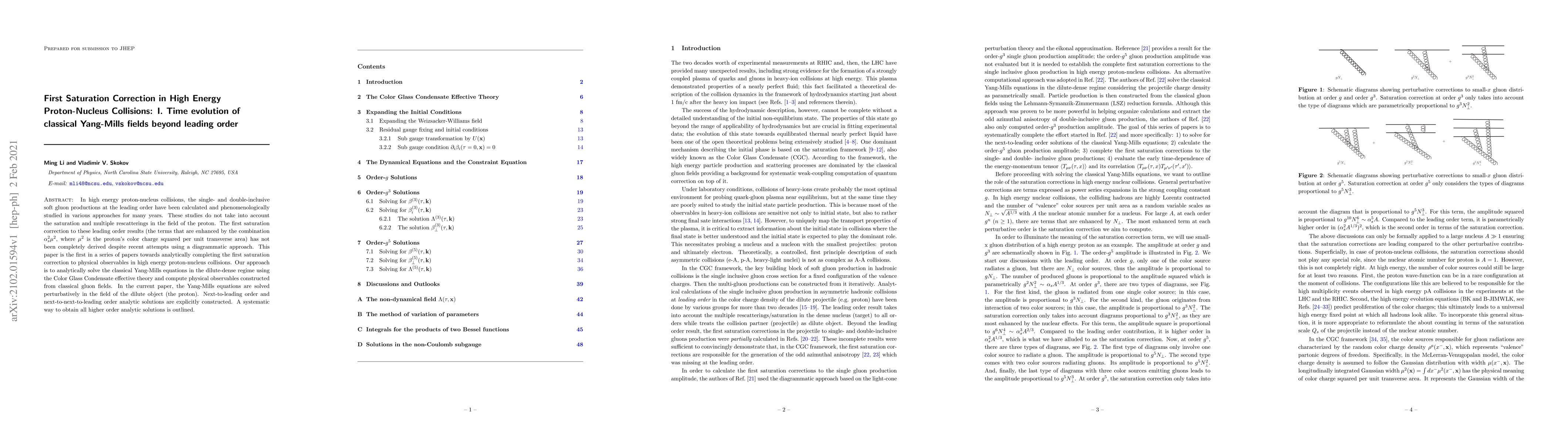 This paper solves classical Yang-Mills equations in proton-nucleus collisions to analyze saturation corrections for high-energy particle productions, providing new insights into physical observables.