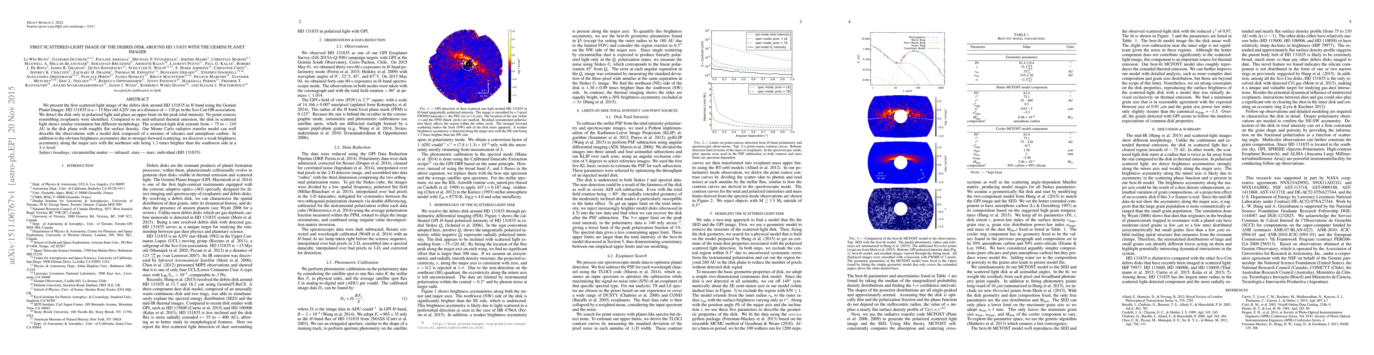 This paper presents the first scattered-light image of the debris disk around HD 131835 in the H band using the Gemini Planet Imager, revealing a disk extending from 75 to 210 AU with a roughly flat surface density. The study finds a weak brightness asymmetry along the major axis, with no evidence of exoplanets.