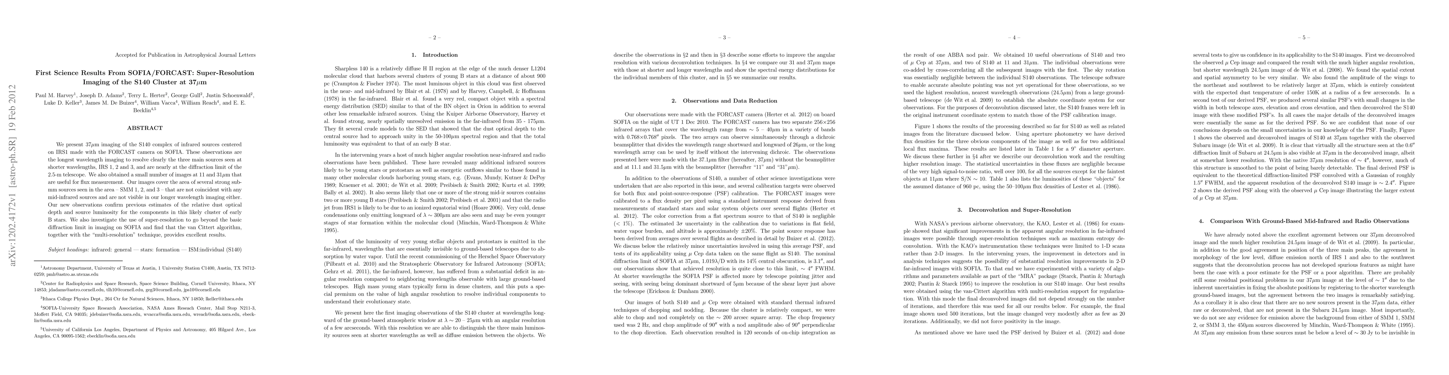 We present 37\micron\ imaging of the S140 complex of infrared sources centered on IRS1 made with the FORCAST camera on SOFIA. These observations are the longest wavelength imaging to resolve clearly the three main sources seen at shorter wavelengths, IRS 1, 2 and 3, and are nearly at the diffraction limit of the 2.5-m telescope. We also obtained a small number of images at 11 and 31\micron\ that are useful for flux measurement. Our images cover the area of several strong sub-mm sources seen in the area -- SMM 1, 2, and 3 -- that are not coincident with any mid-infrared sources and are not visible in our longer wavelength imaging either. Our new observations confirm previous estimates of the relative dust optical depth and source luminosity for the components in this likely cluster of early B stars. We also investigate the use of super-resolution to go beyond the basic diffraction limit in imaging on SOFIA and find that the van Cittert algorithm, together with the "multi-resolution" technique, provides excellent results.