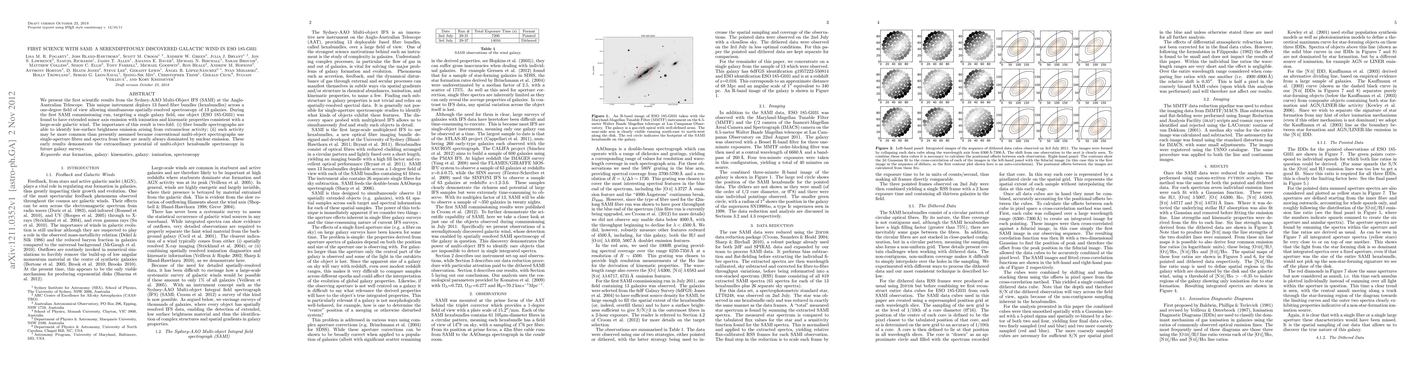 We present the first scientific results from the Sydney-AAO Multi-Object IFS (SAMI) at the Anglo-Australian Telescope. This unique instrument deploys 13 fused fibre bundles (hexabundles) across a one-degree field of view allowing simultaneous spatially-resolved spectroscopy of 13 galaxies. During the first SAMI commissioning run, targeting a single galaxy field, one object (ESO 185-G031) was found to have extended minor axis emission with ionisation and kinematic properties consistent with a large-scale galactic wind. The importance of this result is two-fold: (i) fibre bundle spectrographs are able to identify low-surface brightness emission arising from extranuclear activity; (ii) such activity may be more common than presently assumed because conventional multi-object spectrographs use single-aperture fibres and spectra from these are nearly always dominated by nuclear emission. These early results demonstrate the extraordinary potential of multi-object hexabundle spectroscopy in future galaxy surveys.