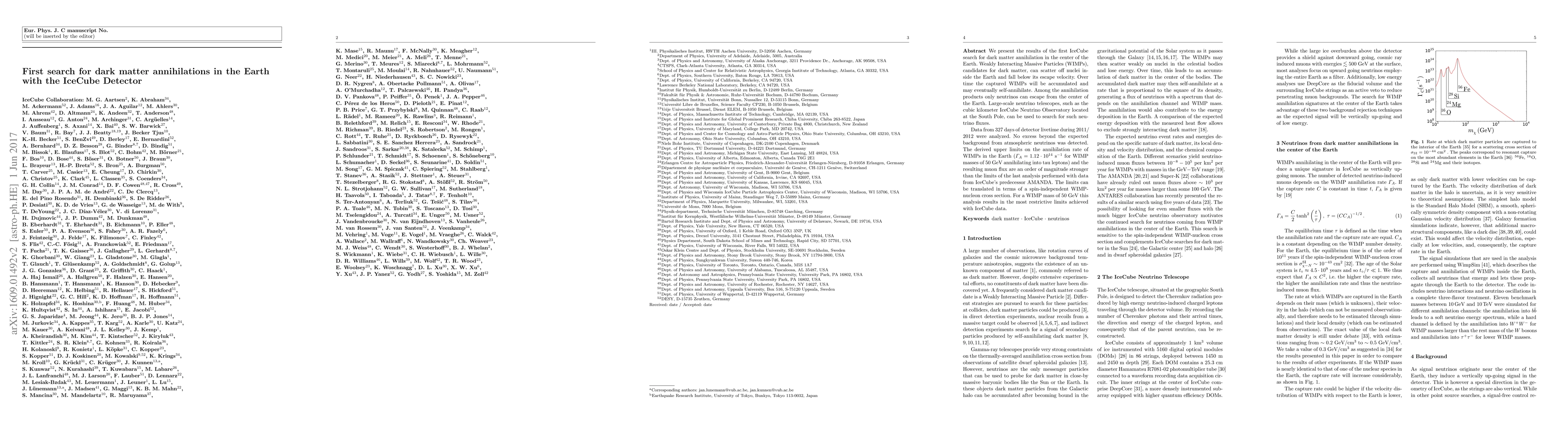This study reports the first search for dark matter annihilations in the Earth using the IceCube Neutrino Observatory, finding no excess neutrino flux beyond atmospheric background. The analysis sets stringent upper limits on WIMP annihilation rates, improving previous constraints by an order of magnitude.
