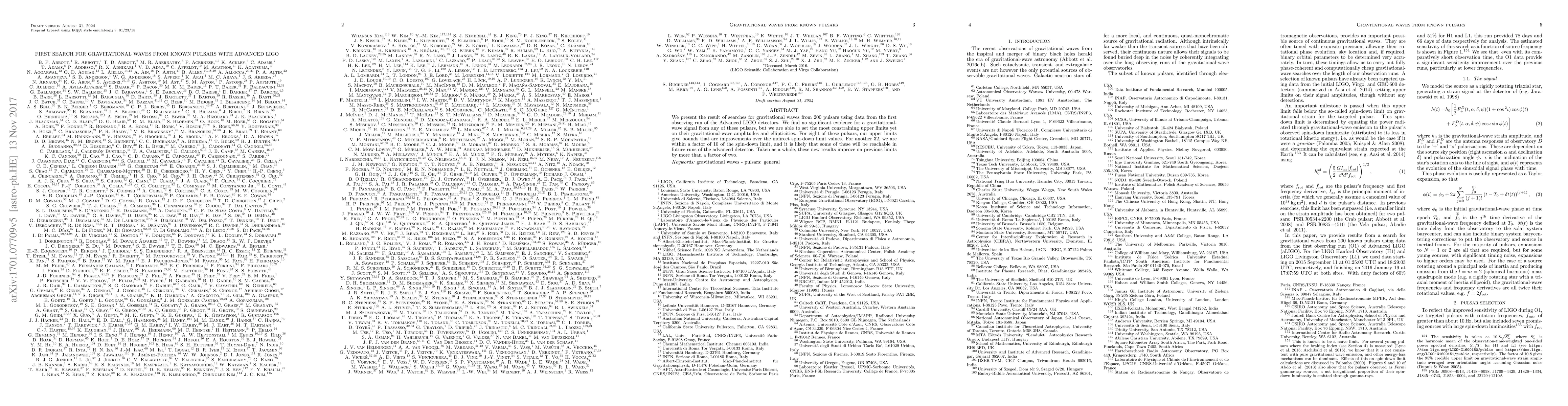 This study reports the first search for gravitational waves from 200 known pulsars using Advanced LIGO data, finding no significant signals but setting new, more stringent upper limits on their gravitational-wave amplitudes and ellipticities. These limits improve previous constraints by over a factor of two.