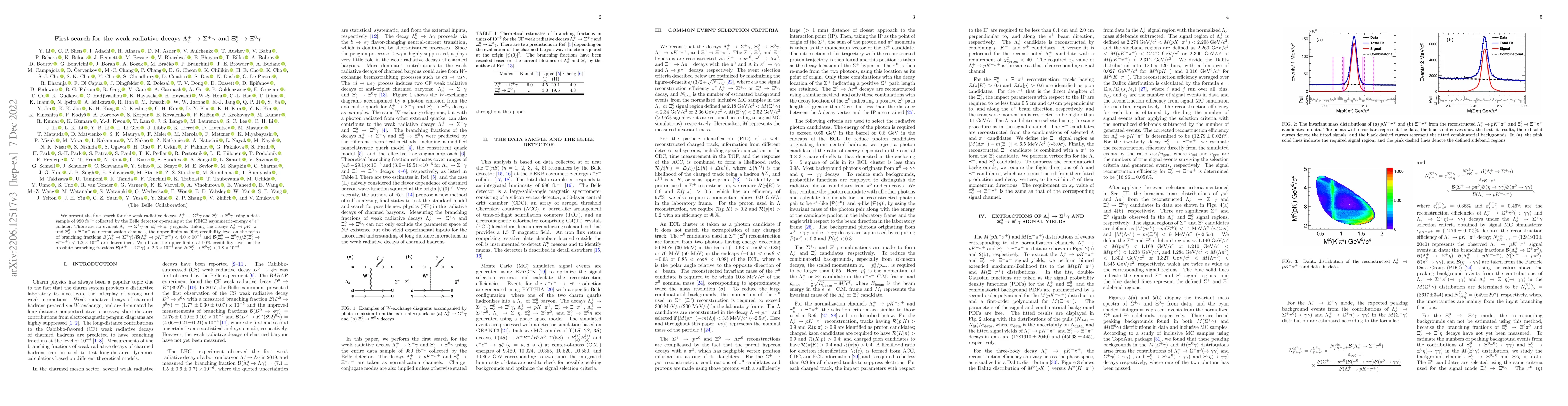 This study reports the first search for the weak radiative decays $\Lambda_c^+ \to \Sigma^+ \gamma$ and $\Xi_c^0 \to \Xi^0 \gamma$ using data from the Belle detector, finding no evident signals. The upper limits on the branching fractions for these decays are determined, providing constraints on their occurrence.