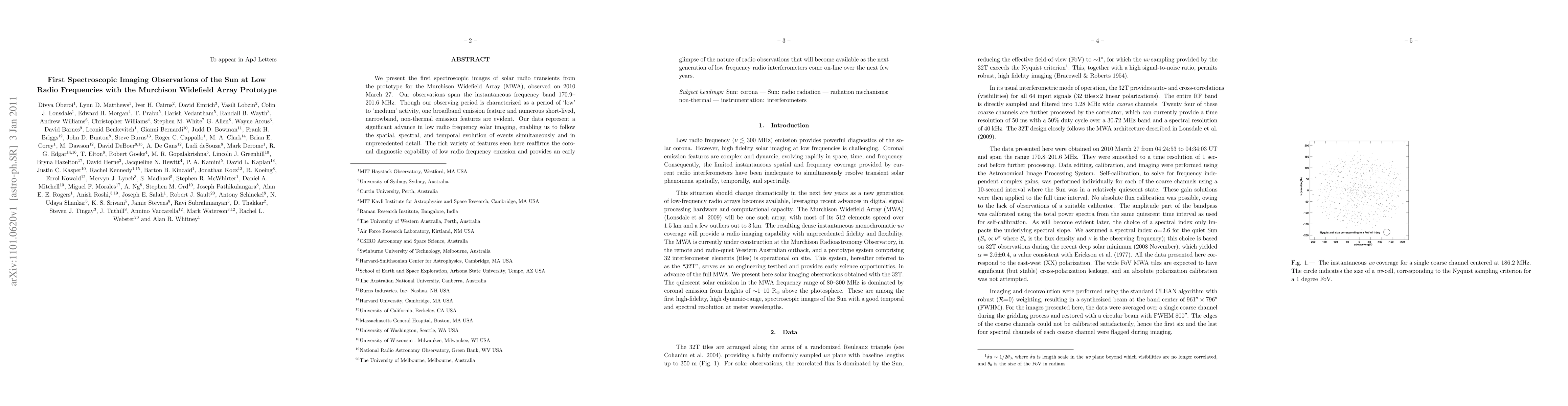 This paper reports the first spectroscopic imaging of solar radio transients using the MWA prototype, capturing low-frequency emissions from March 27, 2010. The study reveals a variety of emission features, highlighting the potential of low-frequency solar imaging and the diagnostic value of such observations.