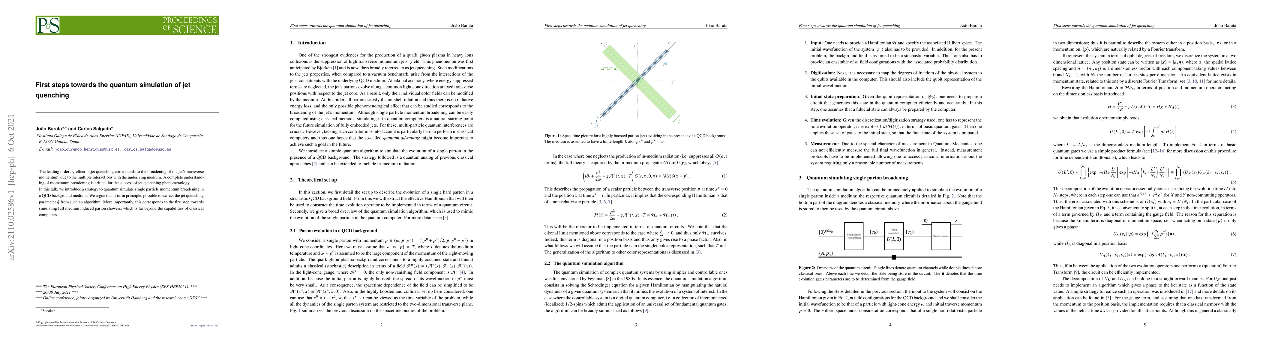 The leading order $\alpha_s$ effect in jet quenching corresponds to the broadening of the jet's transverse momentum, due to the multiple interactions with the underlying medium. A complete understanding of momentum broadening is critical for the success of jet quenching phenomenology. In this talk, we introduce a strategy to quantum simulate single particle momentum broadening in a QCD background medium. We argue that it is, in principle, possible to extract the jet quenching parameter $\hat{q}$ from such an algorithm. More importantly, this corresponds to the first step towards simulating full medium induced parton showers, which is far beyond the capabilities of classical computers.