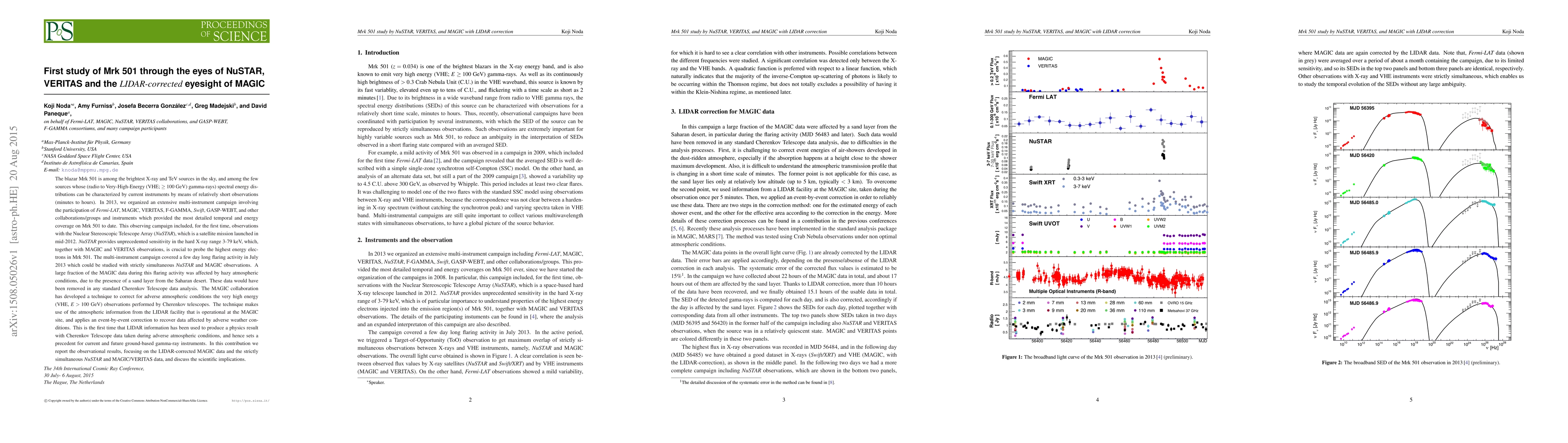 This study presents the first comprehensive multi-instrument campaign on the blazar Mrk 501, utilizing NuSTAR, VERITAS, and LIDAR-corrected MAGIC data. The campaign captured a significant flaring event in July 2013, highlighting the unprecedented sensitivity of NuSTAR in hard X-ray observations and the innovative LIDAR-correction technique applied to MAGIC data to recover data from adverse atmospheric conditions.