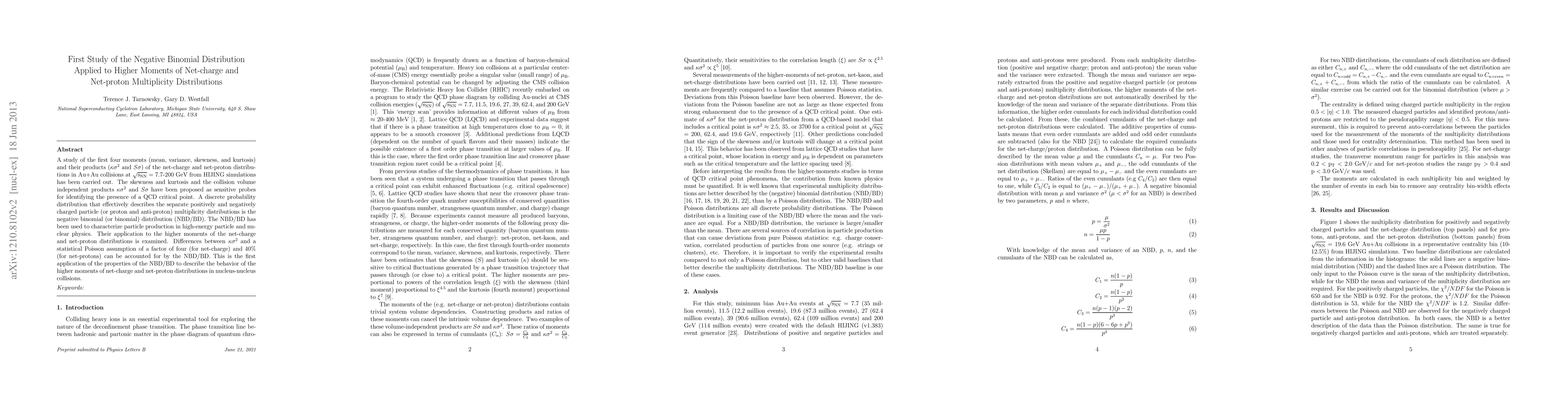 This study investigates the first four moments of net-charge and net-proton distributions in Au+Au collisions using HIJING simulations, proposing skewness, kurtosis, and collision volume independent products as probes for a QCD critical point. The negative binomial distribution is applied to describe higher moments, showing significant differences from Poisson assumptions, marking the first use of this distribution for such analyses.