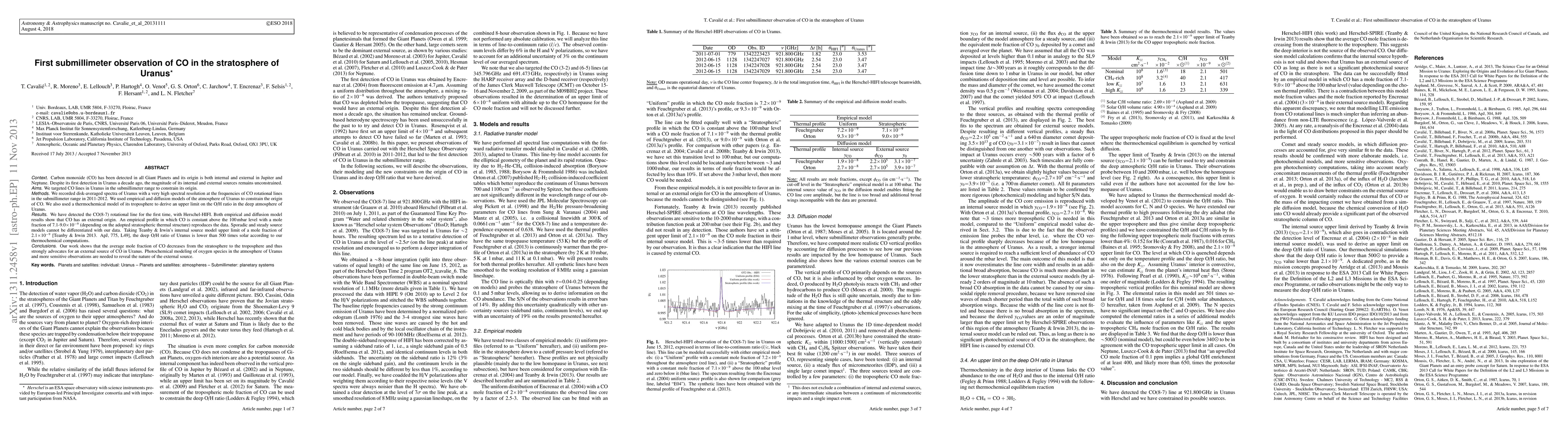 This study first detects CO in Uranus' stratosphere using submillimeter observations, revealing an external origin due to a constant CO mole fraction from 100mbar upwards. The findings suggest a deep O/H ratio lower than 500 times solar, pointing to an external CO source and necessitating further photochemical modeling and observations for source identification.